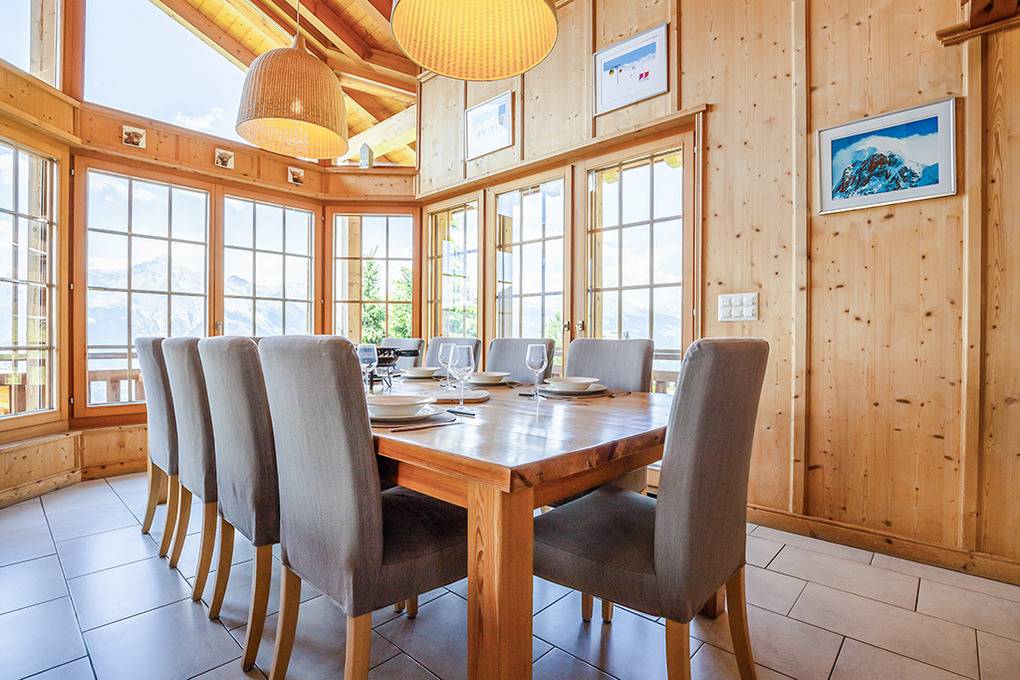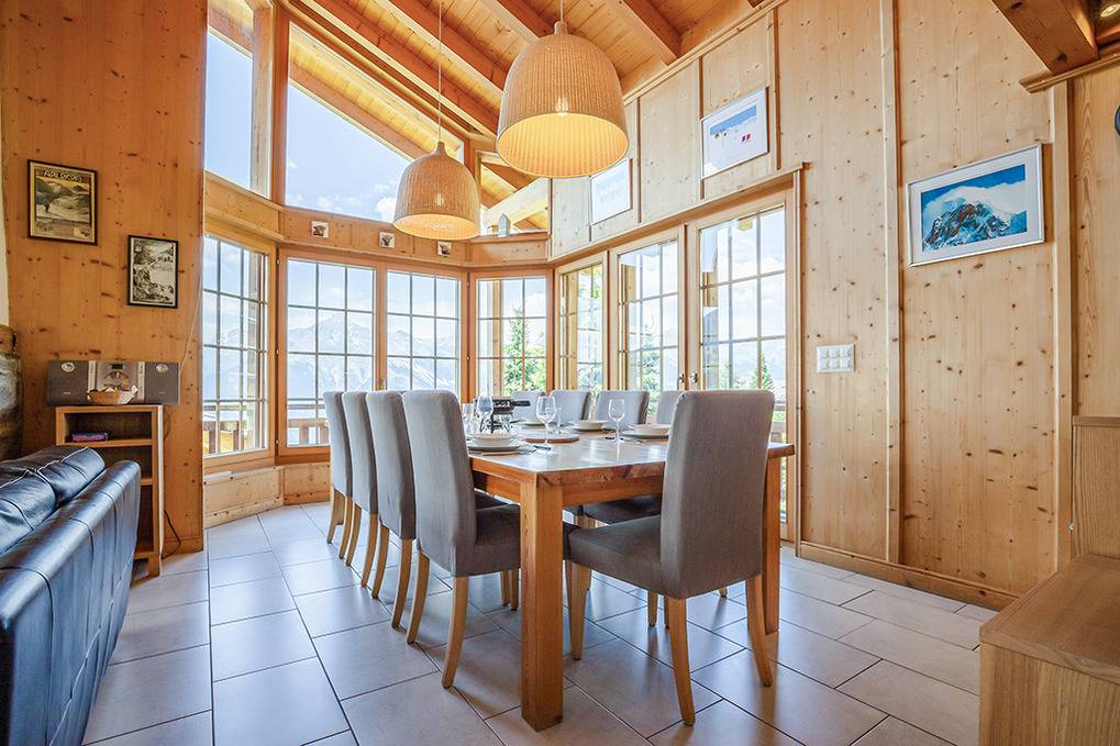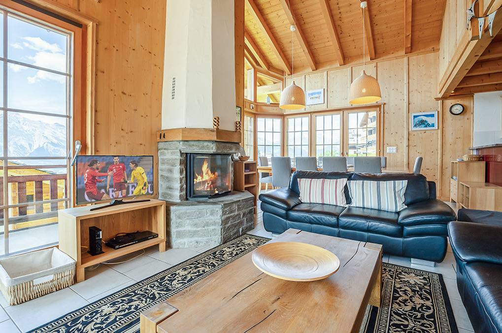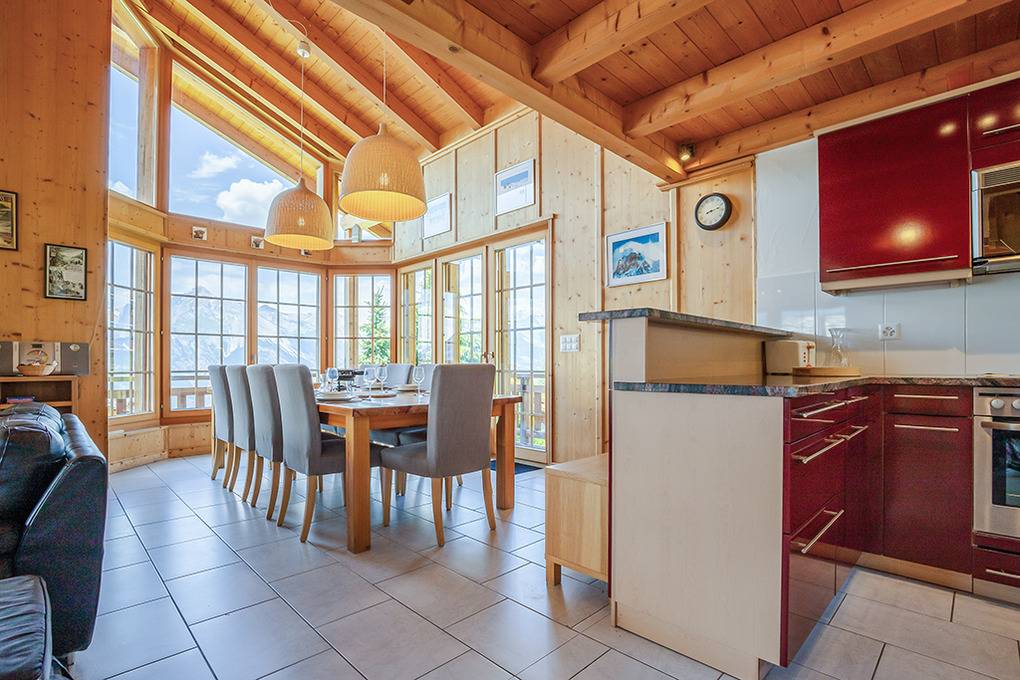 Ort: Veysonnaz. Neue Chaletsiedlung in ruhiger, dennoch zentraler Lage. Herrlicher Blick ins Rhône-Tal. Ortsmitte 250 m. Schwimmbad (Eintritt im Mietpreis enthalten) mit Dampf-/Sauna, Whirlpool (ermäßigter Eintritt) 150 m. Gondelbahn, Talabfahrt 700 m. Skibus 100 m. Bei entsprechender Schneelage Skiabfahrt bis in Hausnähe (450 m).