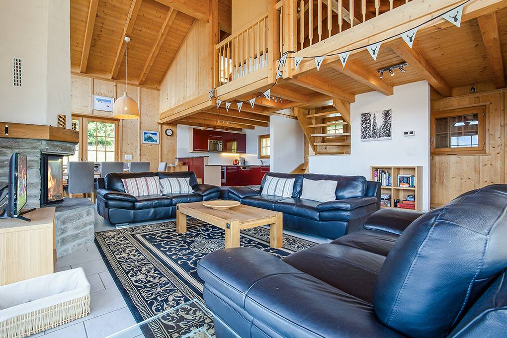 Haus: Sehr schönes, großzügiges Luxus-Chalet mit Kamin. 5-Zimmerhaus mit 200 qm Wohnfläche über drei Etagen. Hochwertige, geschmackvolle Einrichtung. Zentrum des Hauses ist der lichtdurchflutete, bis in den Dachgiebel ausgebaute, große Wohnraum mit seinen umlaufenden Panoramafenstern. Kostenloser Internetzugang über W-Lan. Waschmaschine. E-Heizung. Warmwasser über 600 l E-Boiler. Großer, teilüberdachter Balkon mit Sitzmöbeln. Kleiner Garten.