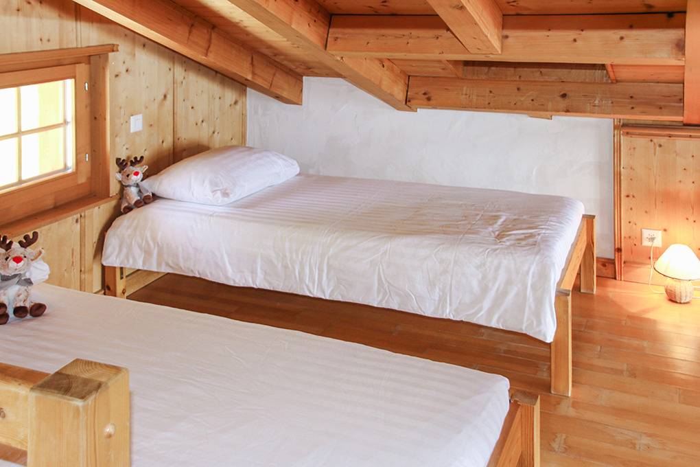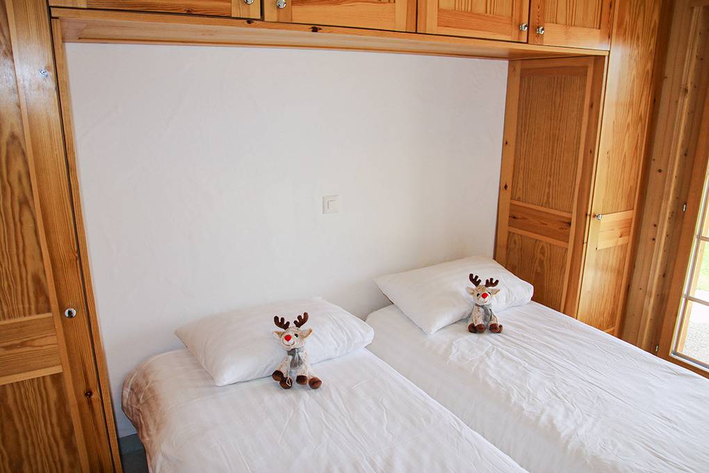 2. Etage (leichte Dachschrägen): Galerie, offen zum Wohnraum mit 2 Einzelbetten. Bad/WC.