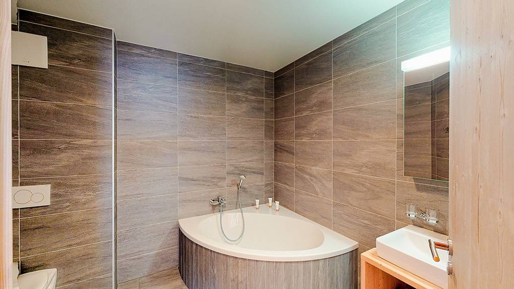 CH 385.43 Wohnung 6-8 Pers.: 4 Zimmer, 125 qm. Großer Wohnraum mit Sitzgruppe (Schlafsofa 2 Pers.), TV, Esstisch, Küchenzeile. Doppelzimmer mit Bad (Bw/Du, Wb, WC). Zwei Doppelzimmer. Bad: Du, Wb, WC.