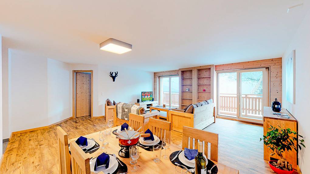Nebenkosten Endreinigung 182 € (wird bei Buchung erhoben). Die Kurtaxe wird vor Ort bezahlt. Bettwäsche, Handtücher stellt der Vermieter 30 SFr/Pers. Zusätzliche Leistungen Internet kostenlos über W-Lan. 1 Pkw-Stellplatz inklusiv. weitere Parkplätze nach Voranmeldung (Preis variiert je nach gebuchter Unterkunft). Schwimmbadeintritt von Veysonnaz gemäß Öffnungszeiten. Kaution 1000 SFr. Kinderhochstuhl 35 SFr/Aufenthalt (Bestellung). Babybett zusätzlich zur maximalen Personenzahl 49 SFr/Aufenthalt (Bestellung). Haustier nicht erlaubt.Räume & Aufteilung
