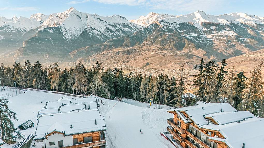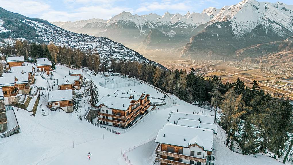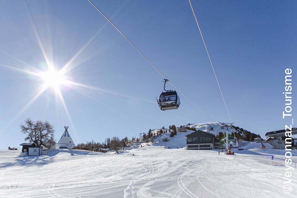 Ort: Veysonnaz. Absolute Top-Lage direkt an der Talabfahrt! Skiabfahrt vom und bis zum Haus. Hanglage mit sehr schönem Blick über den Ort ins Rhônetal. Ortsmitte, Gondel 300 m per Ski, 1 km per Pkw. Schwimmbad (Eintritt im Mietpreis enthalten) 500 m.