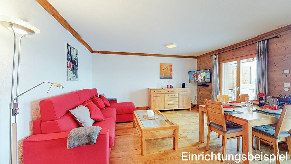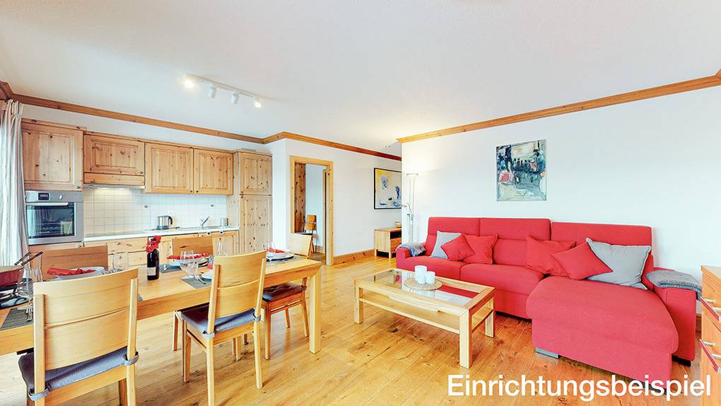 CH 385.36 Wohnung 2-4 Pers.: 2 Zimmer, 50 qm. Großer Wohnraum mit Sitzgruppe (Schlafsofa 2 Pers.), TV, Esstisch, Küchenzeile. Doppelzimmer mit Bad (Bw/Du, Wb, WC). Weiteres Bad: Du, Wb, WC.