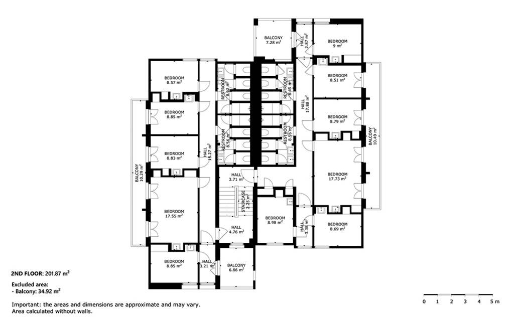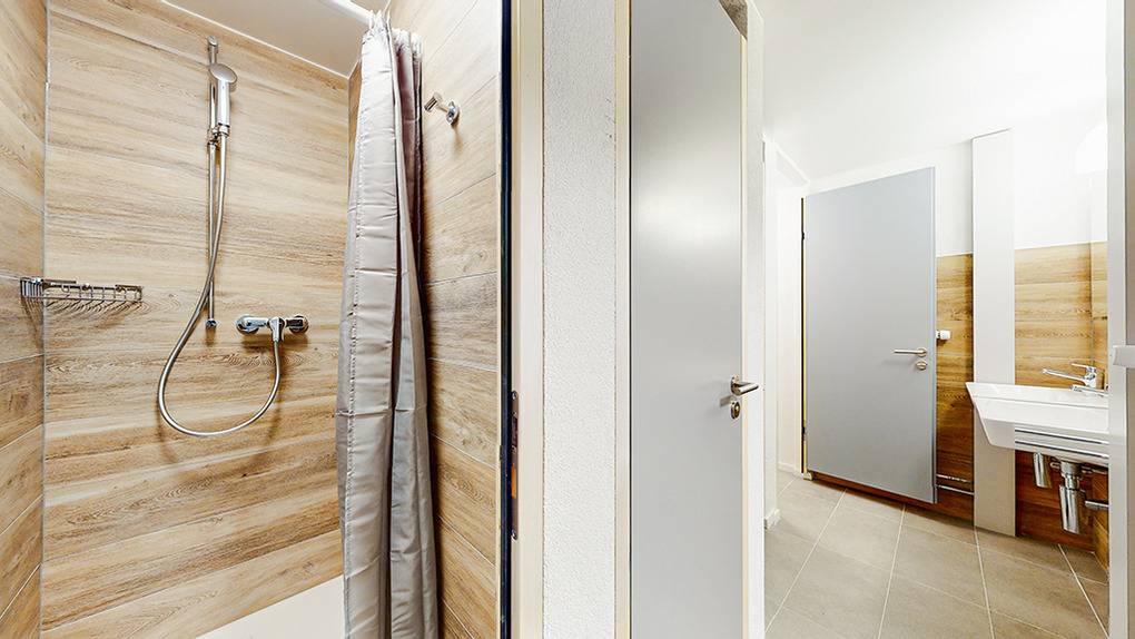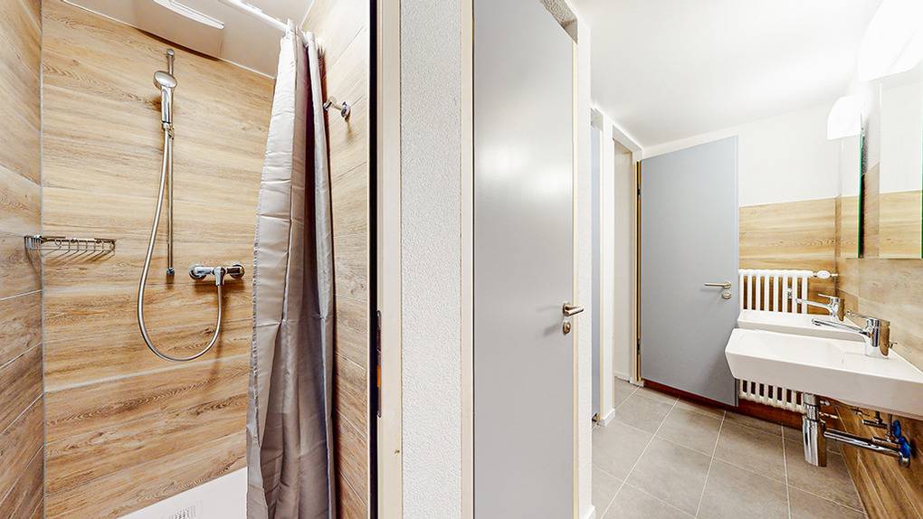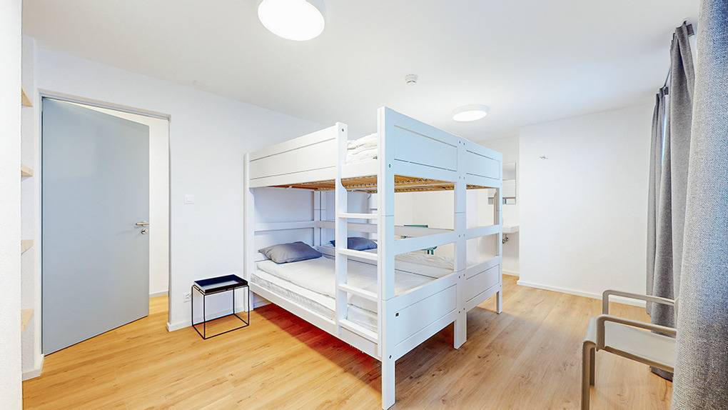2. Etage: Drei Doppelzimmer. Sechs 2-Bettzimmer mit Etagenbett. Zwei 4-Bettzimmer mit Etagenbetten. Vier moderne Waschräume: jeweils 2 Duschen, 2 Wb, 2 WC.