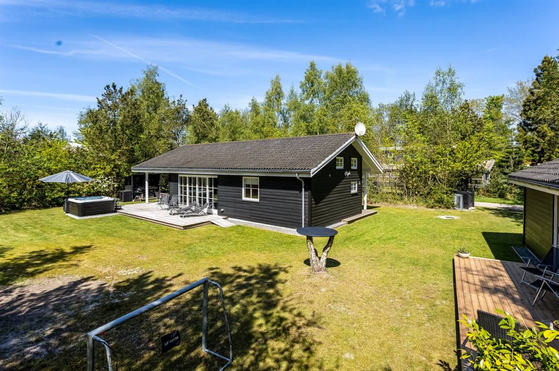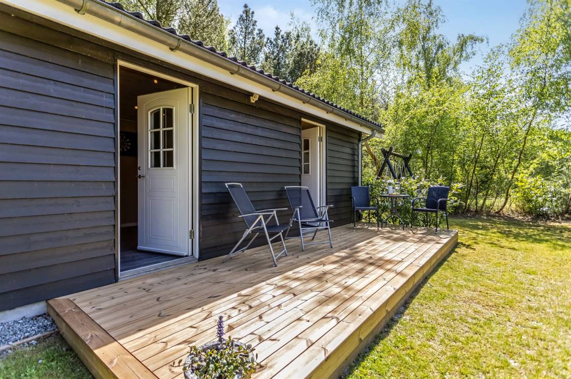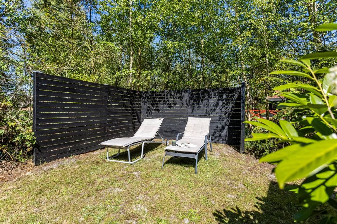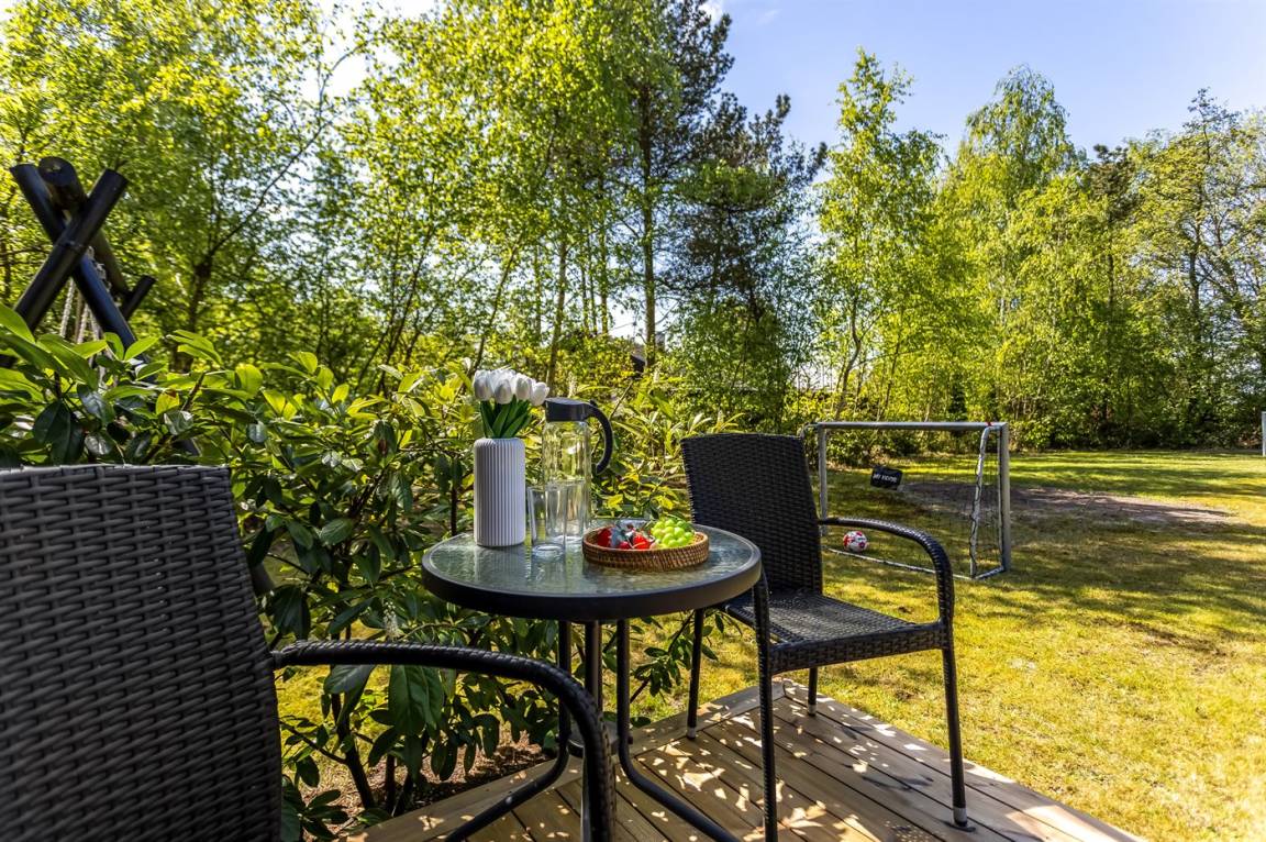 DraußenDie Ferienunterkunft liegt auf einem 1000 m² großen Naturgrundstück. Das Grundstück ist eingezäunt. Die Entfernung zum Meer beträgt 1100 m. Es steht ein offenes Terrassenareal zur Verfügung. Außerdem gibt es überdachte Terrasse. Schaukel. Fußballtor. Außendusche. Es steht ein Grill zur Verfügung. Parkplatz auf dem Grundstück.