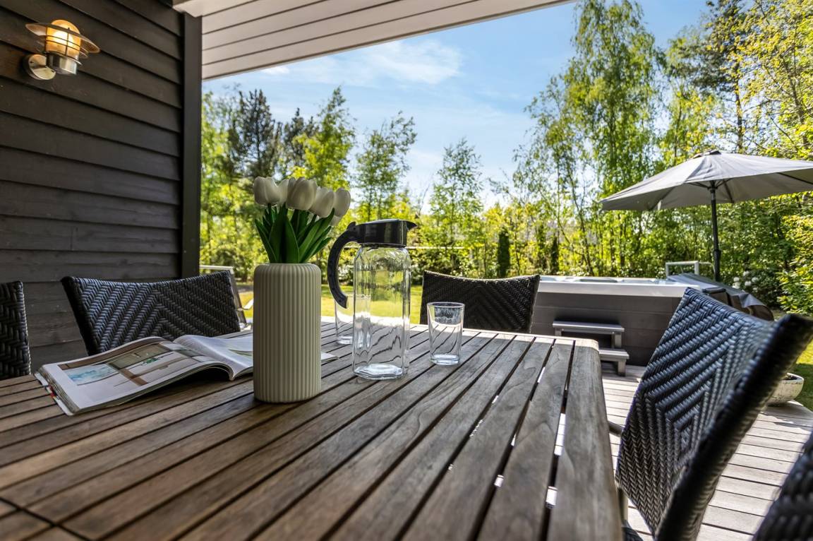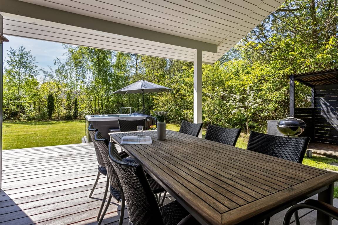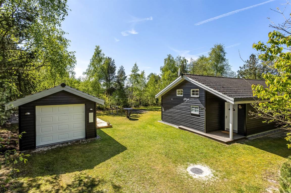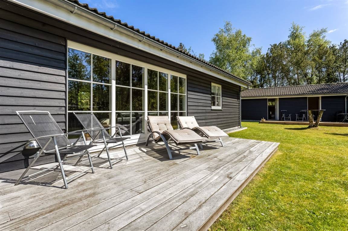 DraußenDie Ferienunterkunft liegt auf einem 1000 m² großen Naturgrundstück. Das Grundstück ist eingezäunt. Die Entfernung zum Meer beträgt 1100 m. Es steht ein offenes Terrassenareal zur Verfügung. Außerdem gibt es überdachte Terrasse. Schaukel. Fußballtor. Außendusche. Es steht ein Grill zur Verfügung. Parkplatz auf dem Grundstück.