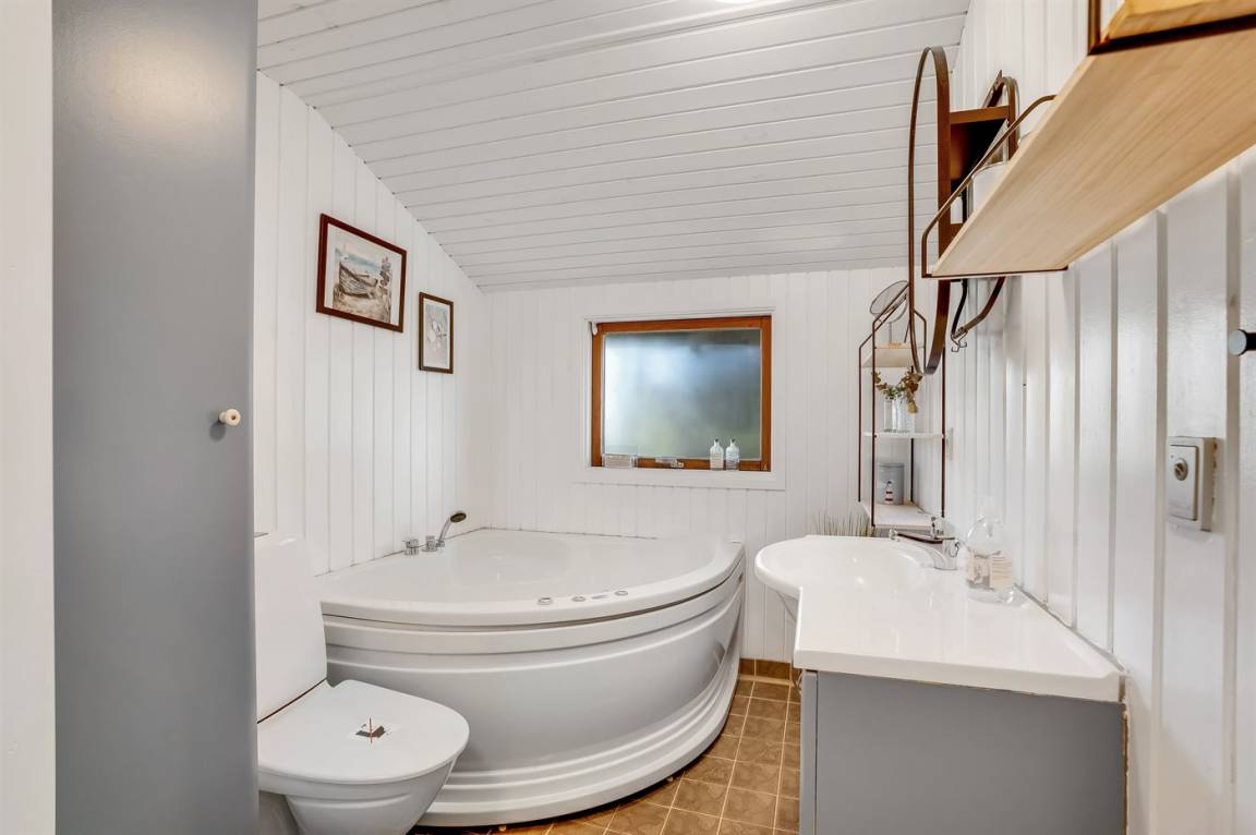 Willkommen in diesem großen, hellen und schön eingerichteten Ferienhaus mit 4 Schlafzimmern und 8 Schlafplätzen, die sich auf 2 Zimmer mit Doppelbetten und 2 Zimmer mit Einzelbetten veteilen. Das Haus hat außerdem ein offenes Obergeschoss mit 3 Matratzen - insgesamt Platz für 11 Personen. Es gibt 2 hübsche Badezimmer mit Dusche, wovon eins einen Whirlpool für 2 Personen hat. Das kleinste Badezimmer wurde 2024 renoviert.