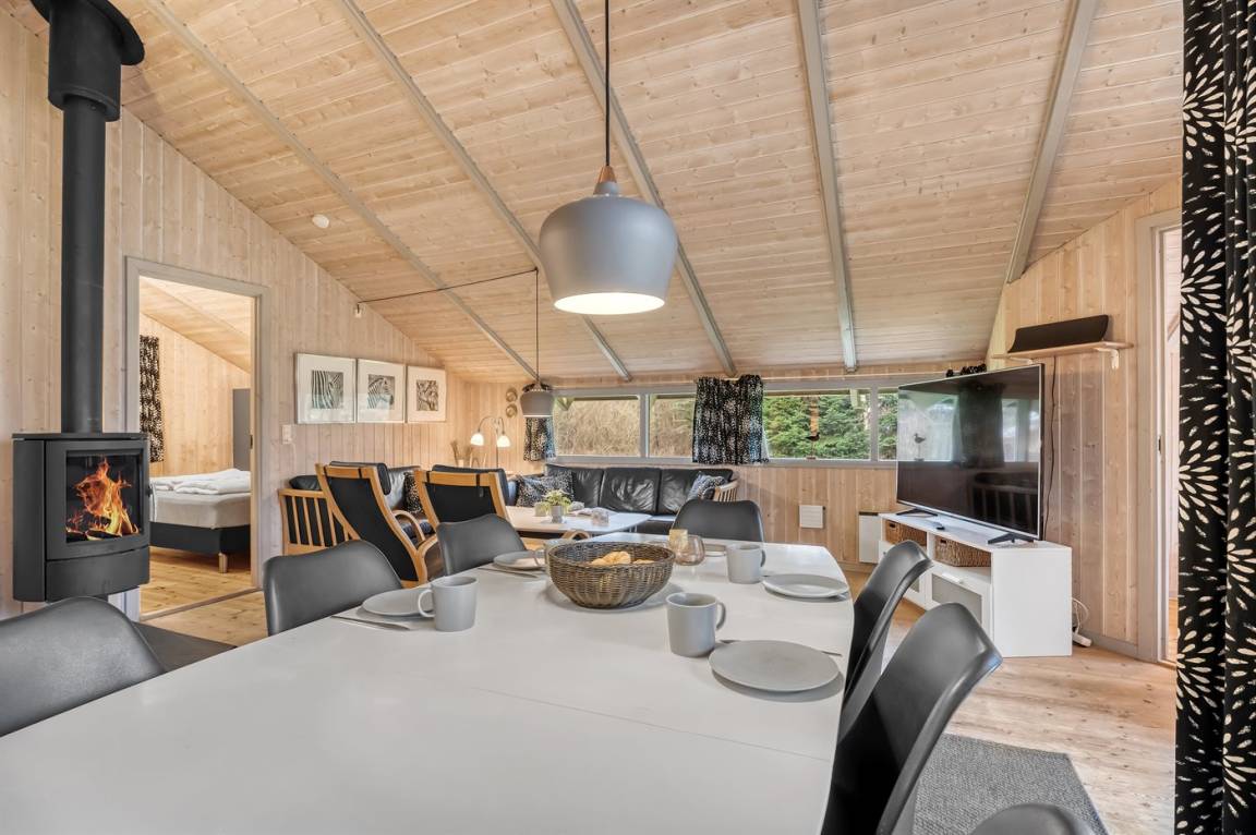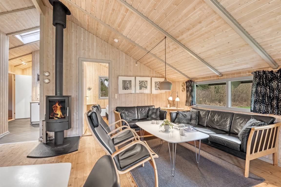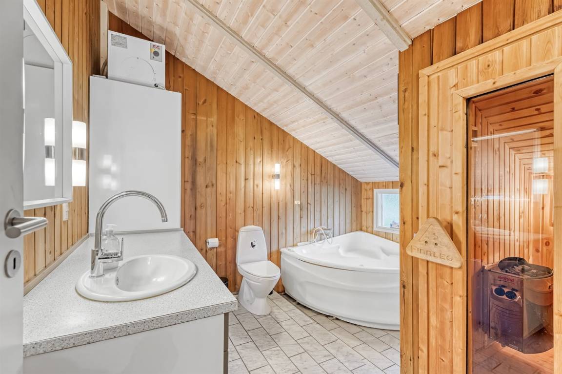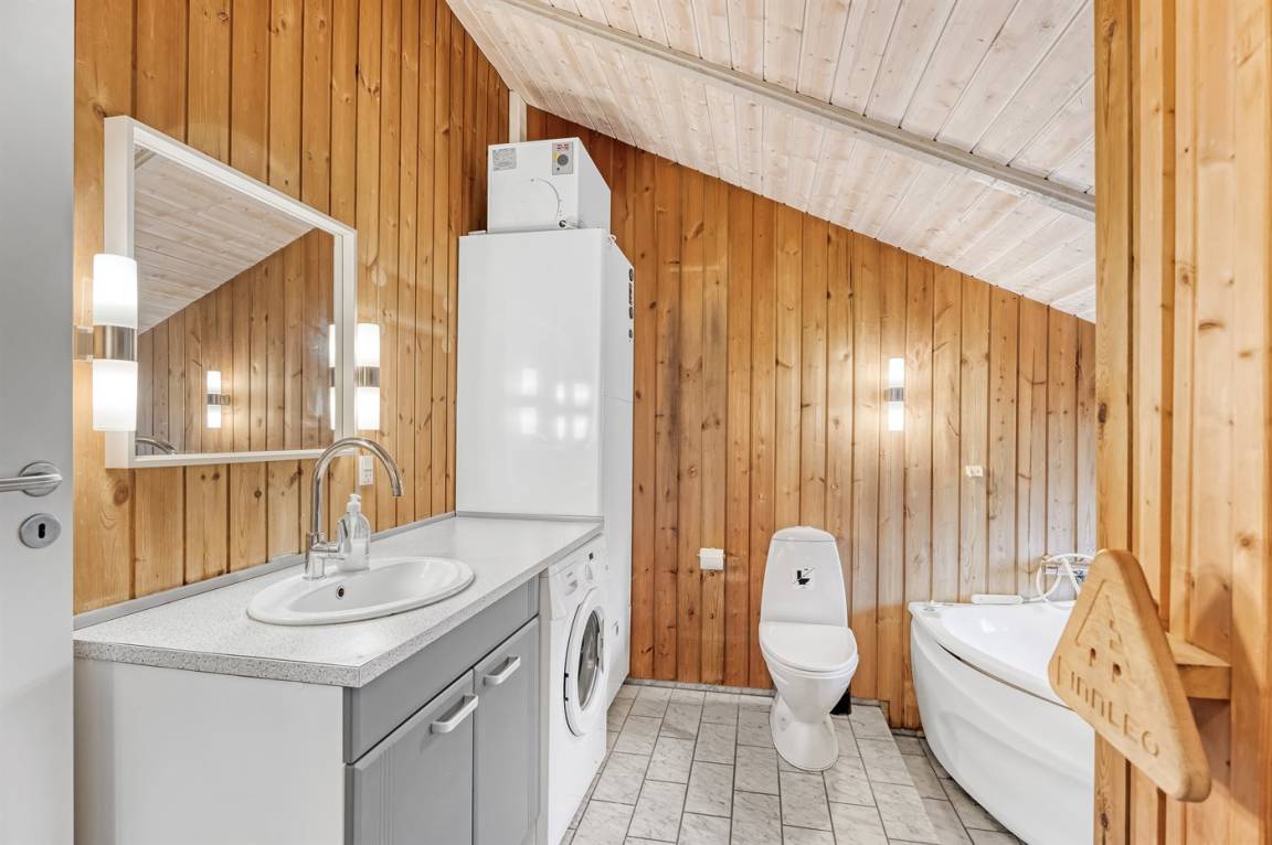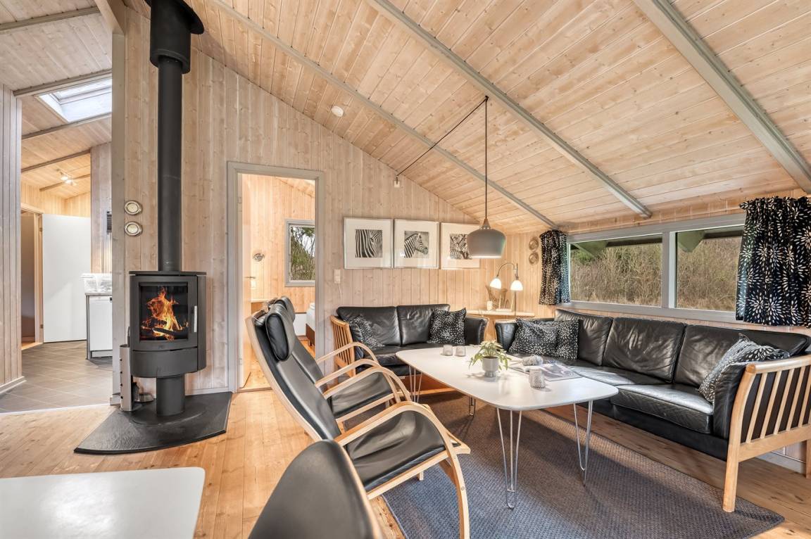 Das Haus liegt auf einem schönen bepflanzten Naturgrundstück mit Sonnenhof. Darüber hinaus Terrassenareal mit Gartenmöbeln. Das große nette Badezimmer mit beheizbarem Marmorfußboden ist mit 2-Pers. Whirlpool, Duschnische, Waschmaschine sowie direktem Zutritt zur Sauna des Hauses eingerichtet. Außerdem Gästetoilette im Haus. Schöne Küche mit Geschirrspüler, Kühl-/Gefrierschrank und Mikrowelle. Hübsch möbliertes Wohnzimmer mit Kaminofen, 65" Fernseher mit Smart-TV, Sony Playstation, Bluetooth-Lautsprecher. Daruber hinaus ist kabellose Internetverbindung installiert. 4 Schlafräume; 2 mit guten Doppelbetten, 1 mit 2 Einzelbetten und 1 mit 1 Doppelbett (mit eine Breite von 140 cm). Für die Kinder gibt es Kinderbett, Kinderhochstuhl, Schaukel und Sandkasten. Es ist ferner eine Solaranlage installiert.