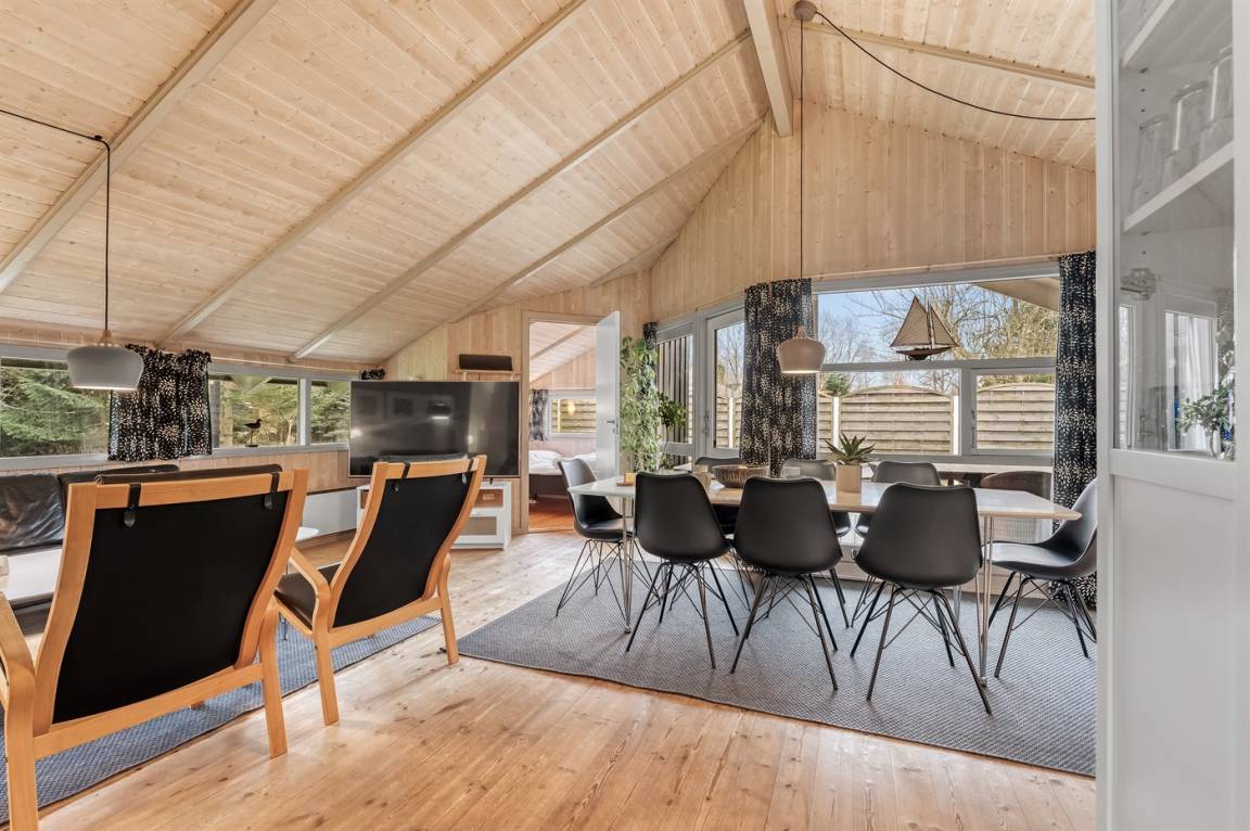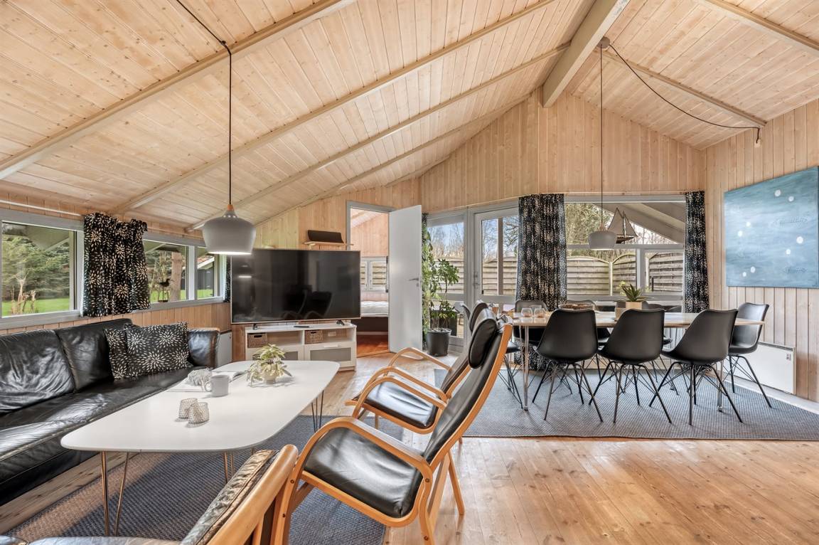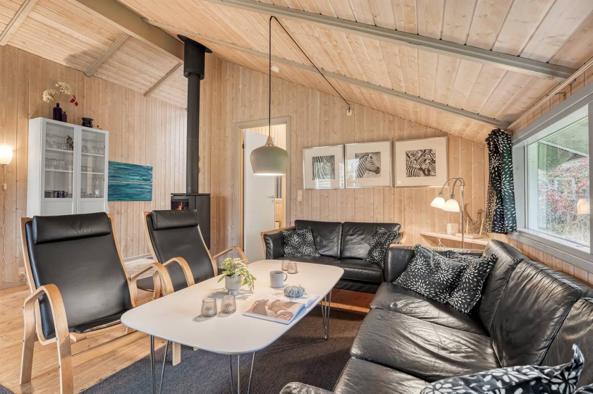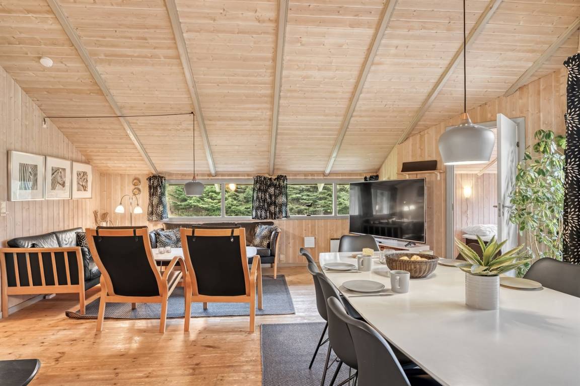 Das Haus liegt auf einem schönen bepflanzten Naturgrundstück mit Sonnenhof. Darüber hinaus Terrassenareal mit Gartenmöbeln. Das große nette Badezimmer mit beheizbarem Marmorfußboden ist mit 2-Pers. Whirlpool, Duschnische, Waschmaschine sowie direktem Zutritt zur Sauna des Hauses eingerichtet. Außerdem Gästetoilette im Haus. Schöne Küche mit Geschirrspüler, Kühl-/Gefrierschrank und Mikrowelle. Hübsch möbliertes Wohnzimmer mit Kaminofen, 65" Fernseher mit Smart-TV, Sony Playstation, Bluetooth-Lautsprecher. Daruber hinaus ist kabellose Internetverbindung installiert. 4 Schlafräume; 2 mit guten Doppelbetten, 1 mit 2 Einzelbetten und 1 mit 1 Doppelbett (mit eine Breite von 140 cm). Für die Kinder gibt es Kinderbett, Kinderhochstuhl, Schaukel und Sandkasten. Es ist ferner eine Solaranlage installiert.