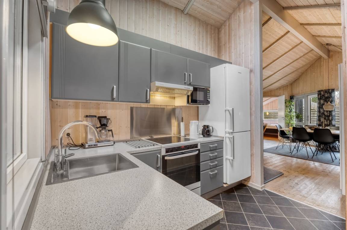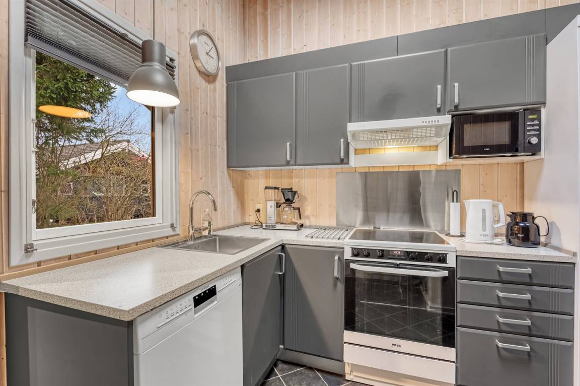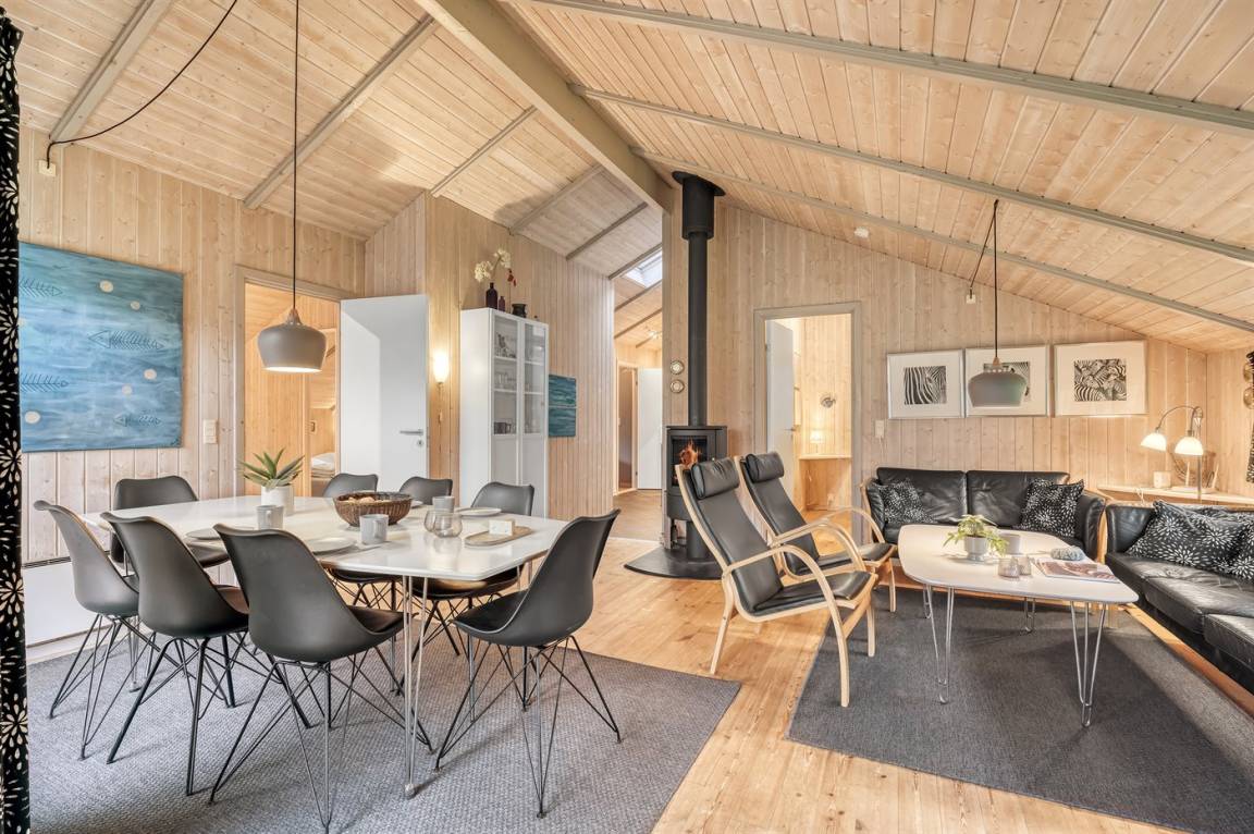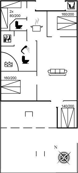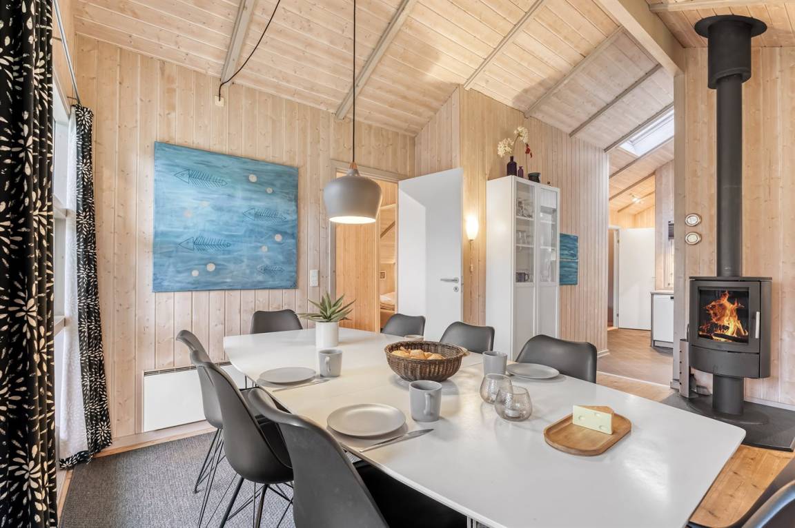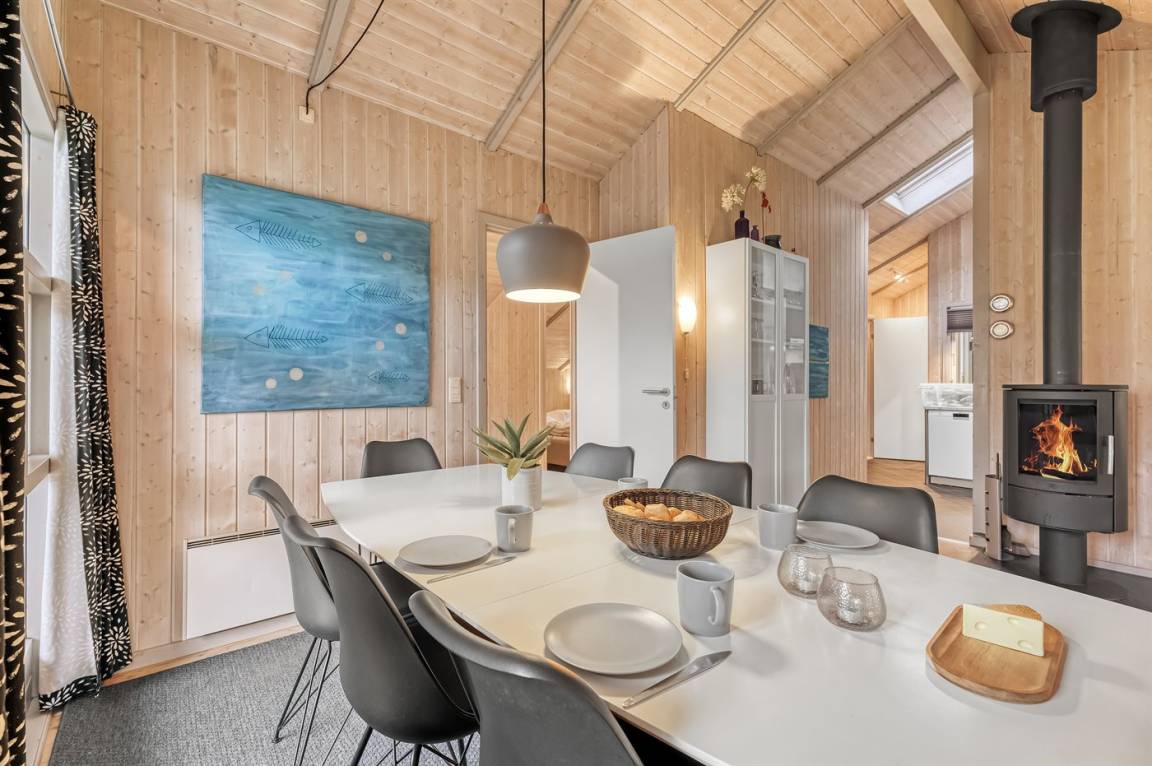 Das Haus liegt auf einem schönen bepflanzten Naturgrundstück mit Sonnenhof. Darüber hinaus Terrassenareal mit Gartenmöbeln. Das große nette Badezimmer mit beheizbarem Marmorfußboden ist mit 2-Pers. Whirlpool, Duschnische, Waschmaschine sowie direktem Zutritt zur Sauna des Hauses eingerichtet. Außerdem Gästetoilette im Haus. Schöne Küche mit Geschirrspüler, Kühl-/Gefrierschrank und Mikrowelle. Hübsch möbliertes Wohnzimmer mit Kaminofen, 65" Fernseher mit Smart-TV, Sony Playstation, Bluetooth-Lautsprecher. Daruber hinaus ist kabellose Internetverbindung installiert. 4 Schlafräume; 2 mit guten Doppelbetten, 1 mit 2 Einzelbetten und 1 mit 1 Doppelbett (mit eine Breite von 140 cm). Für die Kinder gibt es Kinderbett, Kinderhochstuhl, Schaukel und Sandkasten. Es ist ferner eine Solaranlage installiert.