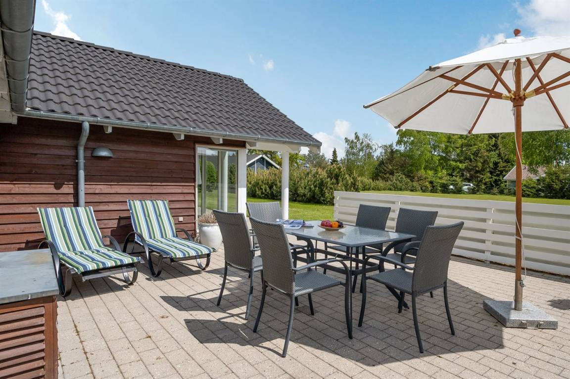 Im Außenbereich findest du mehrere schöne Terrassen, auf denen du den ganzen Tag die Sonne genießen und an milden Sommerabenden den Grill anzünden kannst. Der große Garten bietet viel Platz zum Spielen und für Ballspiele.