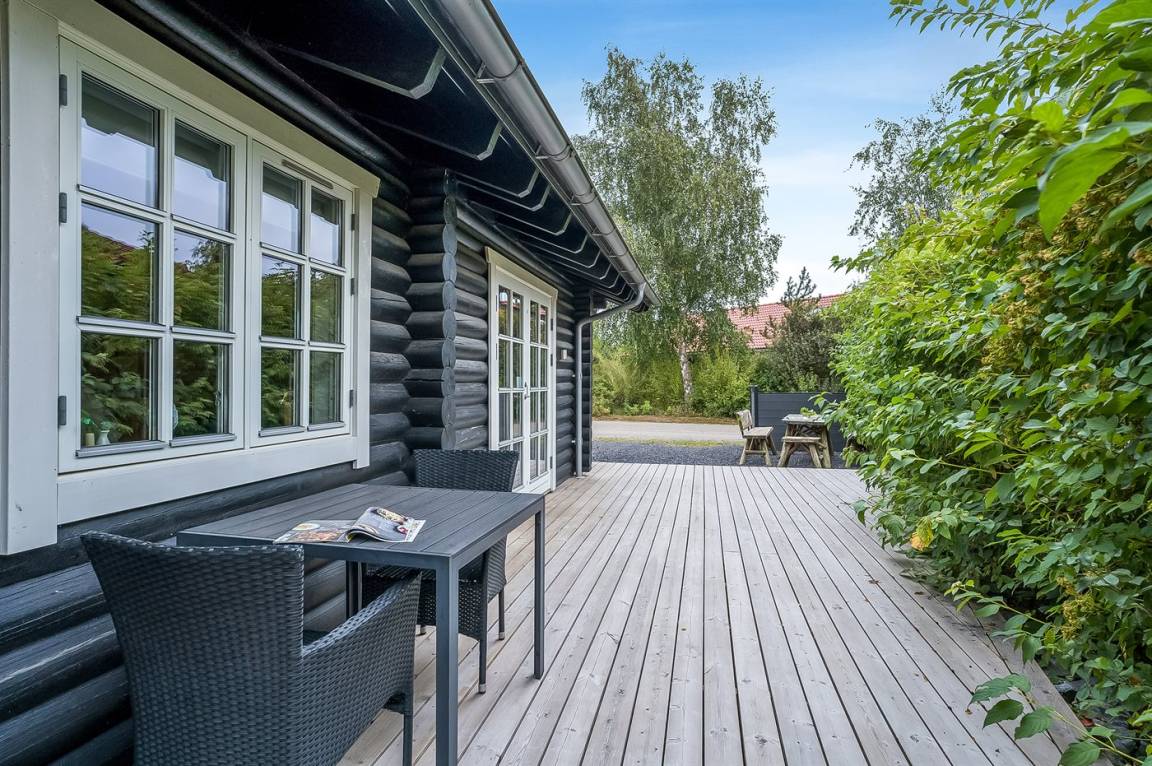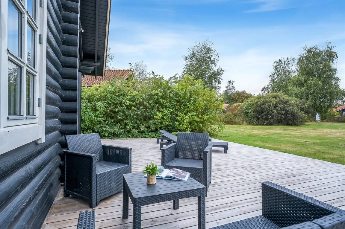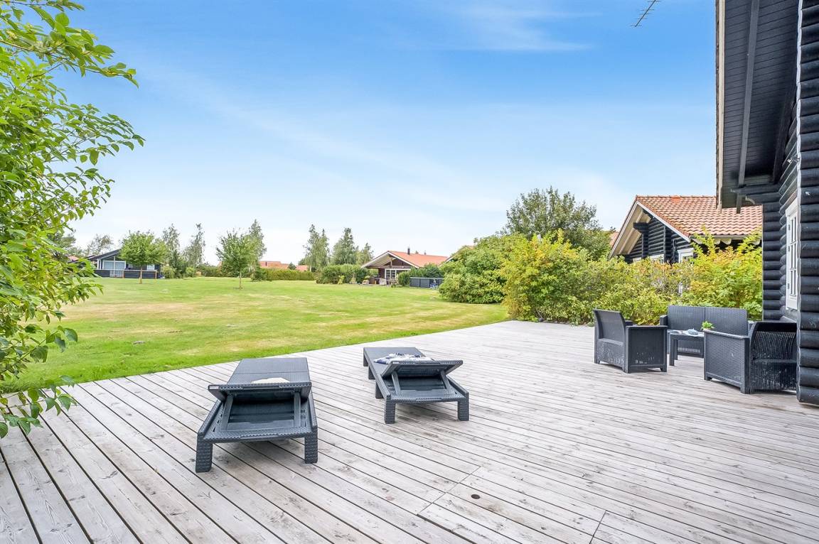 DraußenDie Ferienunterkunft liegt auf einem 370 m² großen Naturgrundstück. Die Entfernung zum Meer beträgt 900 m. Die Entfernung zu einem See beträgt 100 m. Die nächste Einkaufsmöglichkeit liegt 400 m entfernt. In einem Abstand von 400 m gibt es einen Golfplatz. Es steht ein 110 m² Terrassenareal zur Verfügung. Außerdem gibt es 12 m² überdachte Terrasse. Geräteraum. Die Entfernung zu einem Spielplatz beträgt 200 m. Es steht ein Grill zur Verfügung. Parkplatz auf dem Grundstück.