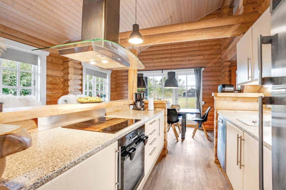 Das Ferienhaus bietet unter anderem Entspannung, da ein Whirlpool für zwei Personen und eine Sauna für bis zu sechs Personen zur Verfügung stehen. Die helle, offene Küche ist in offener Verbindung mit dem Wohnzimmer gestaltet, um gemütliches Beisammensein mit Familie und Freunden zu ermöglichen. Hier findest du auch einen wärmenden Kaminofen für kühle Abende.