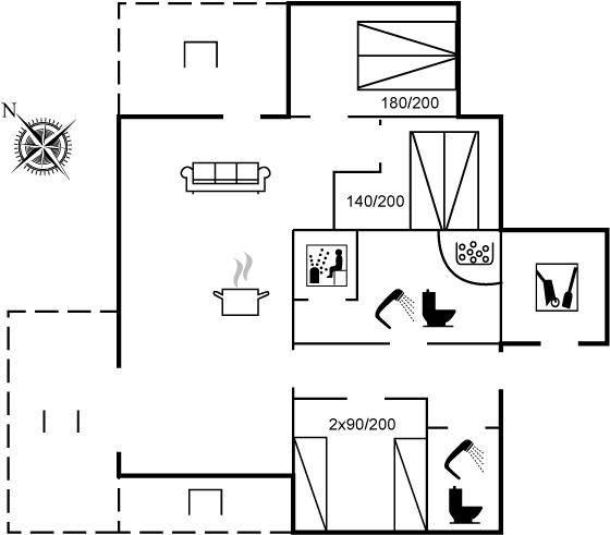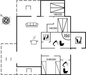 SchlafverhältnisseDie Schlafplätze verteilen sich auf 3 Schlafräume. 4 Schlafplätze in Doppelbetten. 2 Schlafplätze in Einzelbetten. 4 Schlafplätze auf Matratzen. 4 von diesen Schlafplätzen befinden sich im offenen Obergeschoss.