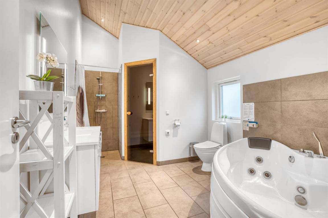 WC und BadEs gibt 2 Badezimmer mit Dusche und 2 Toiletten. Fußbodenheizung in 2 Badezimmern. Es steht eine Sauna zur Verfügung in der Sie sich so richtig entspannen können.