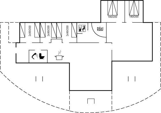 SchlafverhältnisseDie Schlafplätze verteilen sich auf 5 Schlafräume. 4 Schlafplätze in Doppelbetten. 6 Schlafplätze in Einzelbetten. 4 Schlafplätze auf Matratzen. 4 von diesen Schlafplätzen befinden sich im offenen Obergeschoss.