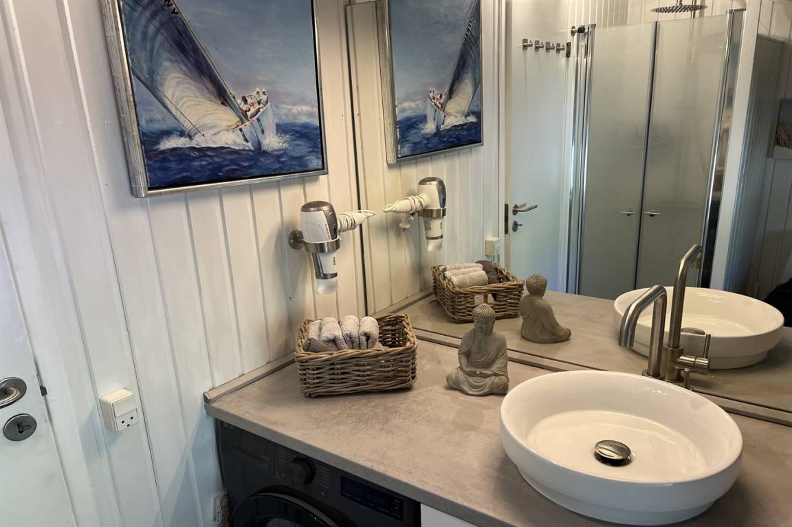 DraußenDie Ferienunterkunft liegt auf einem 1500 m² großen Gartengrundstück. Die Entfernung zum Meer beträgt 1000 m. Die nächste Einkaufsmöglichkeit liegt 1500 m entfernt. Es steht ein 20 m² Terrassenareal zur Verfügung. Grill und Firebowl stehen zur Verfügung. Parkplatz auf dem Grundstück.