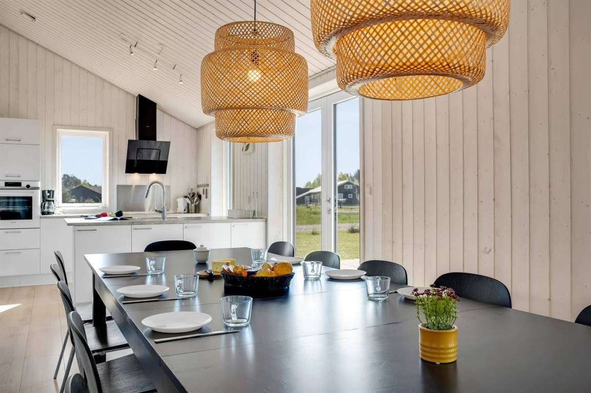 EinrichtungDas Ferienhaus eignet sich für 14 Personen sowie 1 Kleinkind bis zu 3 Jahren. Die Ferienunterkunft hat eine Wohnfläche von 151 m² und wurde 2018 gebaut. Haustiere dürfen nicht mitgebracht werden. Die Ferienunterkunft ist mit energiefreundlicher Luft-Luft- Wärmepumpe ausgestattet. Die Ferienunterkunft ist mit Waschmaschine ausgestattet. Wäschetrockner. Tiefkühlmöglichkeit mit 50 Liter Nutzinhalt. Es gibt außerdem einen Kaminofen. Für die jüngsten Feriengäste sind 2 Kinderhochstühle vorhanden.