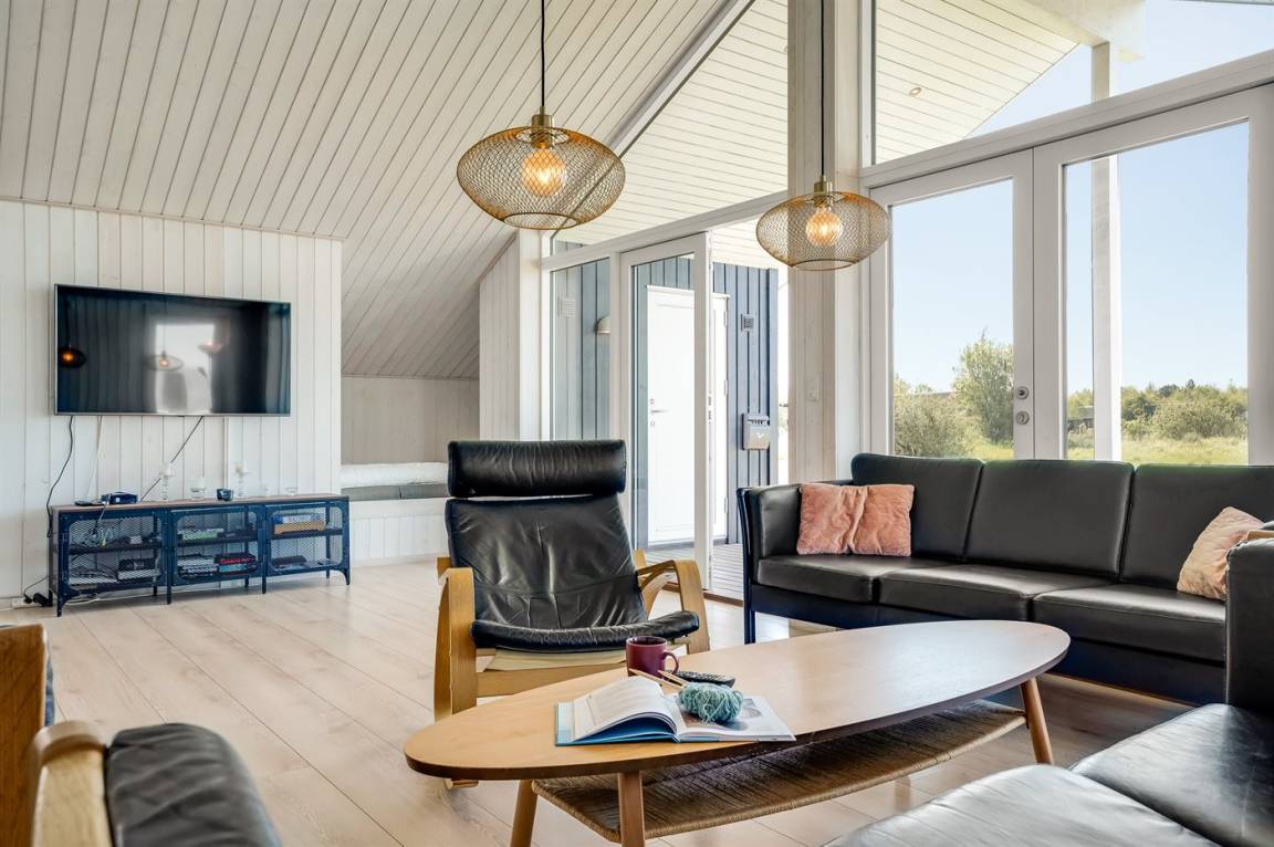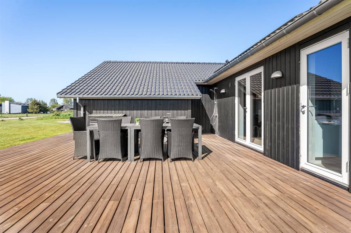 DraußenDie Ferienunterkunft liegt auf einem 1768 m² großen Naturgrundstück. Die Entfernung zum Meer beträgt 800 m. Die nächste Einkaufsmöglichkeit liegt 1000 m entfernt. Es steht ein offenes Terrassenareal zur Verfügung. Außerdem gibt es überdachte Terrasse. Schaukel. Sandkasten. Fußballtor. Außendusche. Es steht ein Grill zur Verfügung. Es ist ein Ladestecker für Elektroautos installiert. Parkplatz auf dem Grundstück.