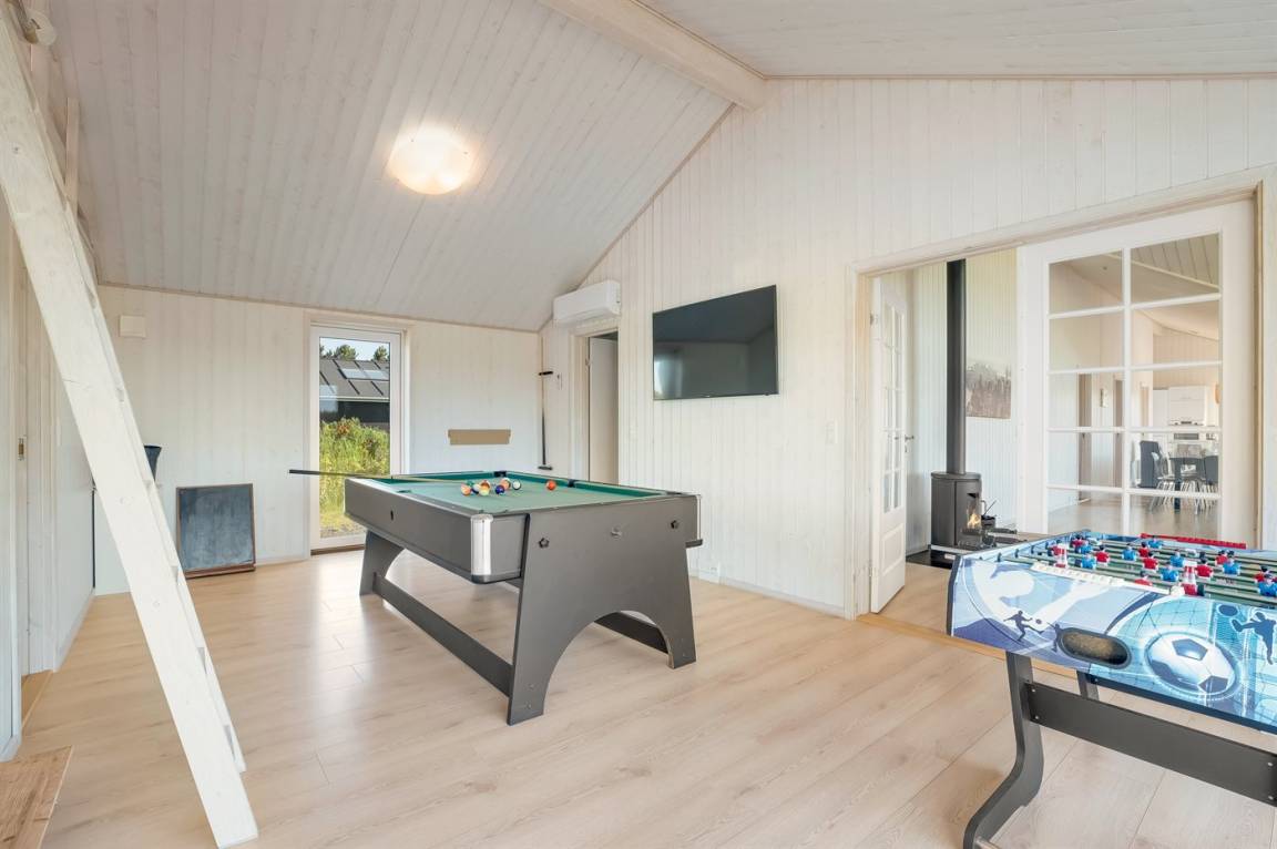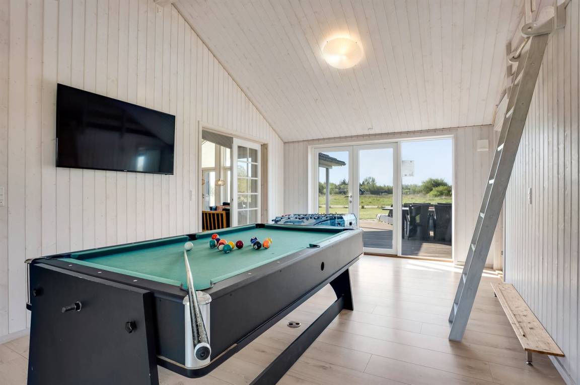 Hier findet ihr ein fantastisches Ferienhaus, das den Rahmen für einen schönen Urlaub in jeder Jahreszeit bieten kann. Das Haus bietet nämlich eine Vielzahl von Aktivitätsmöglichkeiten sowohl drinnen als auch draußen. Auf der großen Terrasse gibt es unter anderem einen 32 m² Außenpool, der beheizt ist (verfügbar mit beheiztem Wasser vom 1. Mai bis 1. Oktober). Auf der Terrasse kann man die Sonne genießen und Essen auf dem Grill zubereiten, während man sich darauf vorbereitet, kann man im Whirlpool planschen, auch am Abend, wenn man den Sternenhimmel betrachten kann. Im Aktivitätsraum besteht die Möglichkeit, sich beim Billard, Darts und Tischfußball zu messen. Man kann nur sagen, dass an alles in diesem Ferienhaus gedacht wurde, das einfach erlebt werden muss.