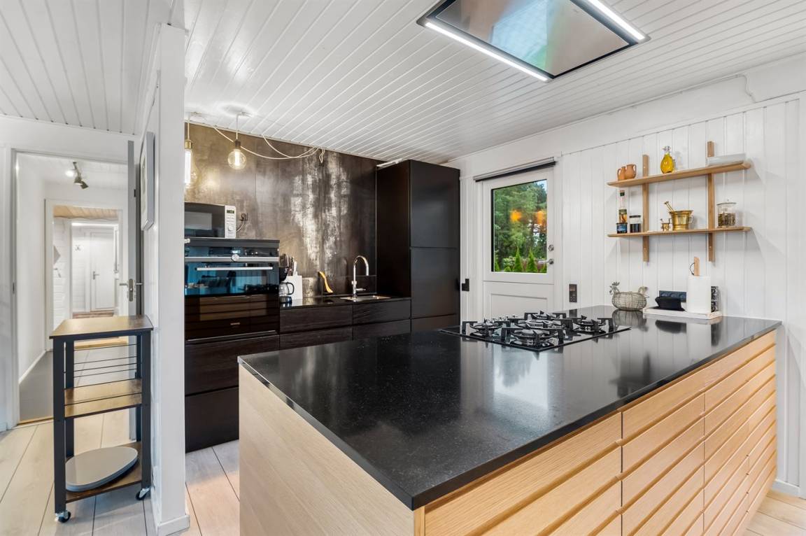 Im Ferienhaus gibt es zahlreiche Möglichkeiten, um gemütliche und lustige Urlaubsmomente miteinander zu verbringen. Im offenen Küchen- und Wohnbereich kann man sich zum Kochen, Spielen oder Filmeschauen treffen. Das Knistern des Pelletkamins sorgt dabei für eine besonders gemütliche Urlaubsatmosphäre.