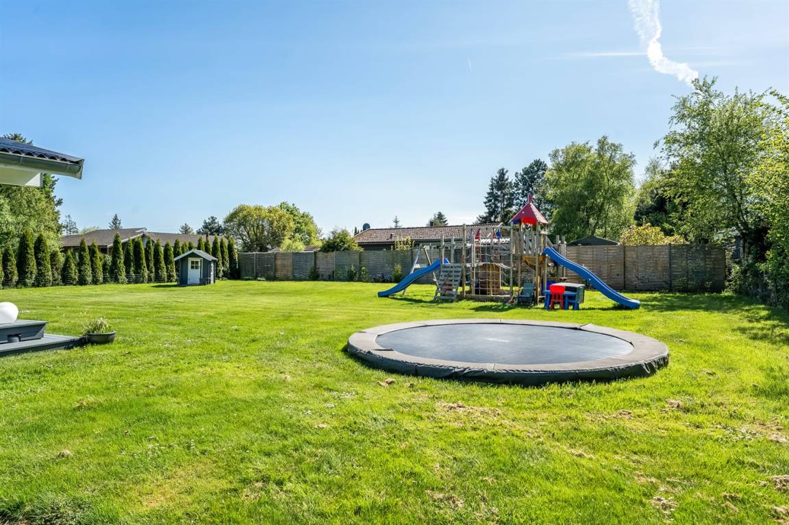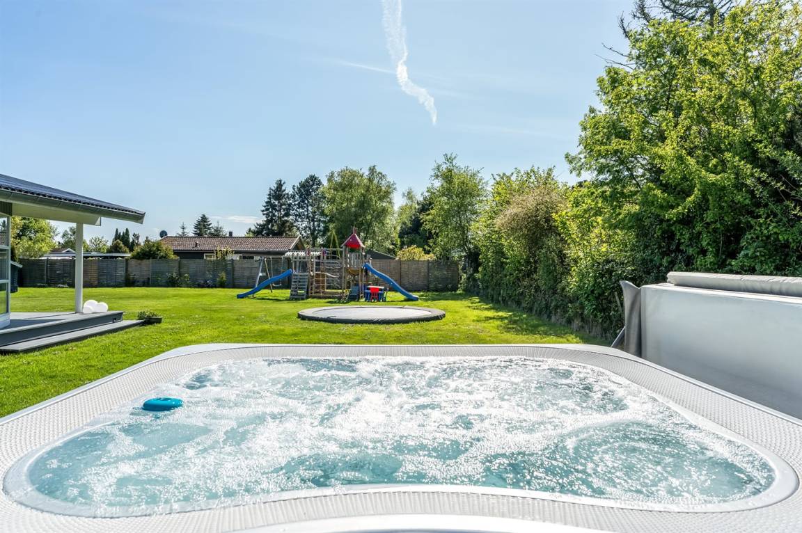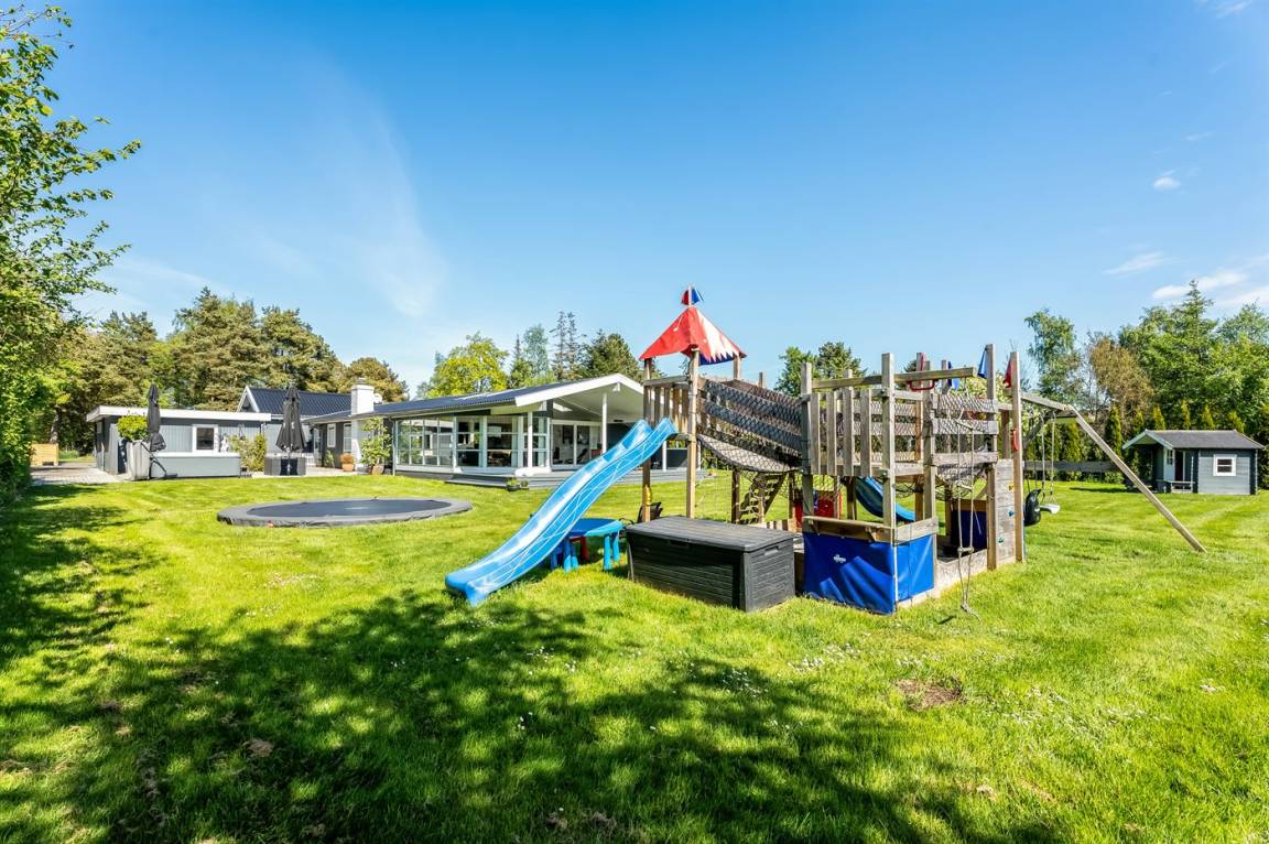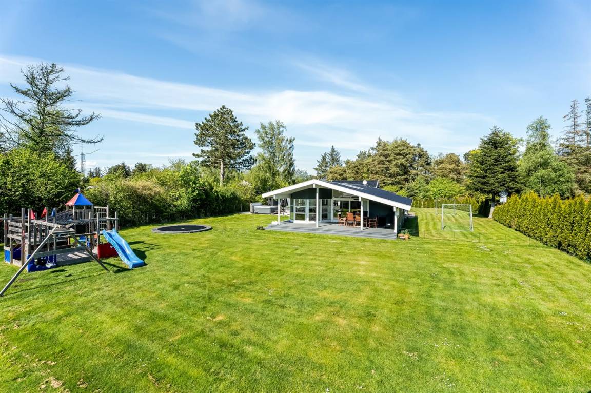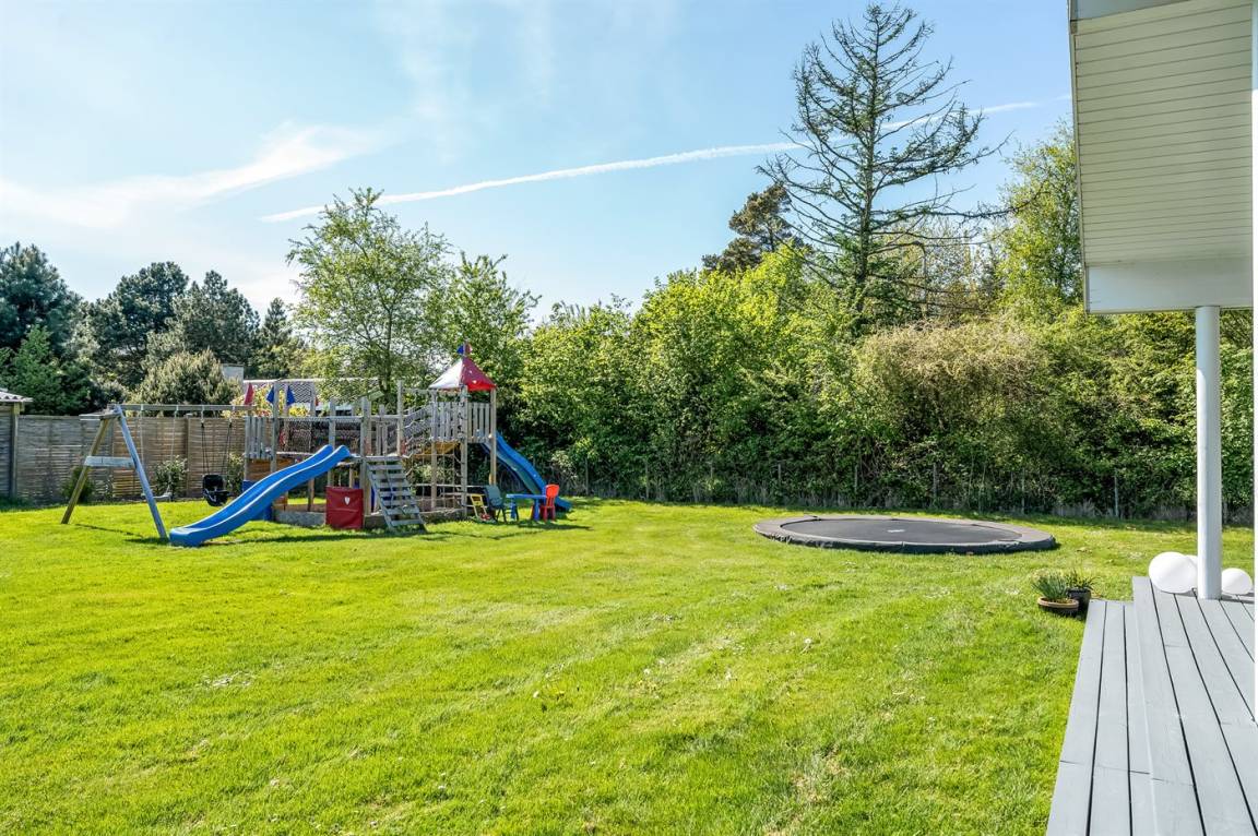 Während man auf der Terrasse entspannt, können die Kinder im Garten spielen. Hier gibt es einen Spielturm mit Rutsche, Sandkasten, Fußballtore und ein Trampolin. Abends könnt ihr euch alle auf der Terrasse zu einem leckeren Abendessen versammeln, das auf dem Grill des Ferienhauses zubereitet werden kann.