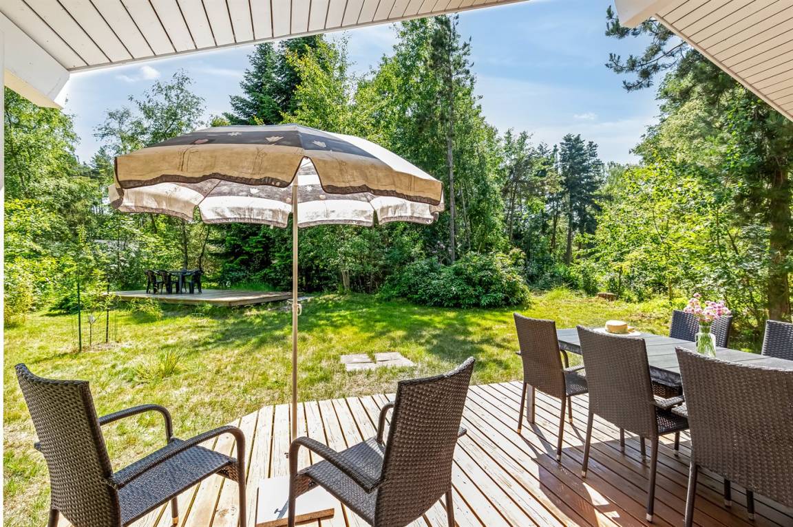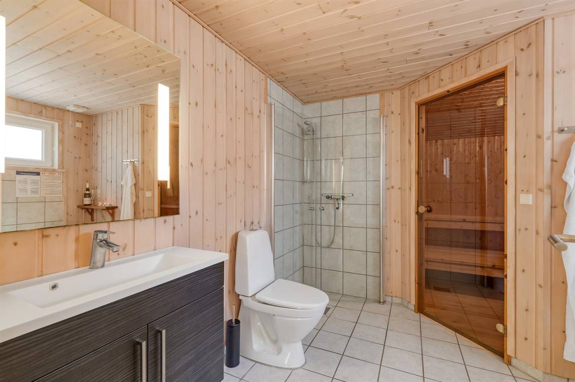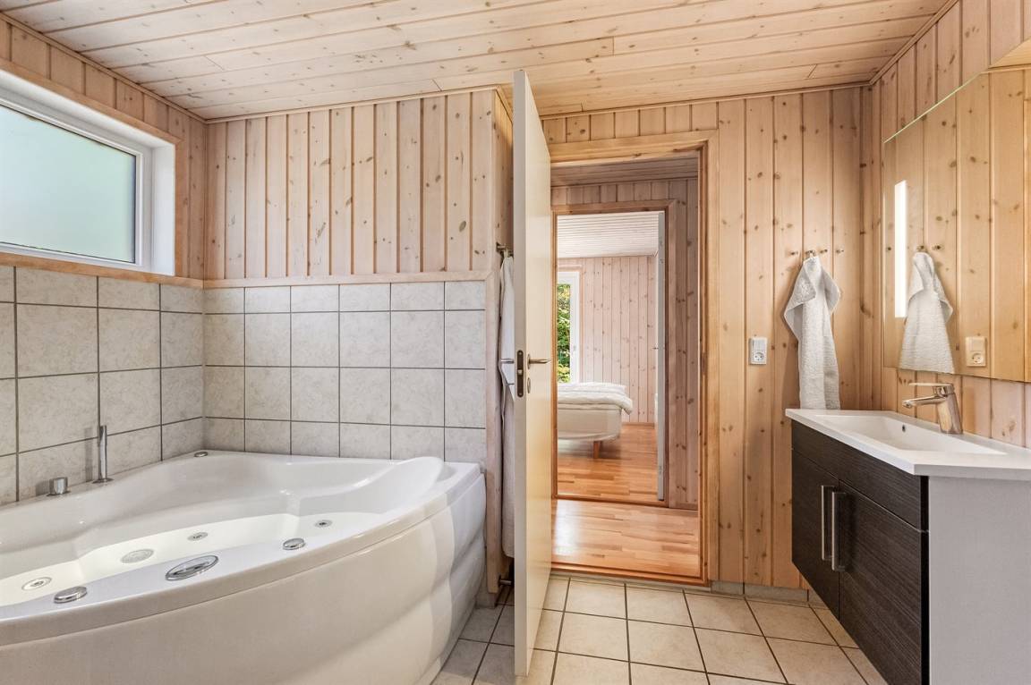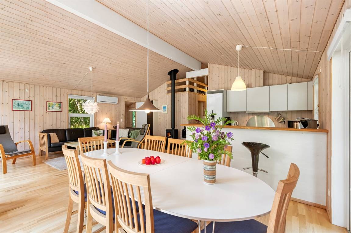 Dieses schöne und gemütlich eingerichtete Ferienhaus aus Holz liegt dicht am Wasser auf einem von hohen Bäumen umgebenen Naturgrundstück. Zum Haus gehört eine teilweise überdachte Terrasse mit Gartenmöbeln. Die schöne und moderne Küche ist u. a. mit Geschirrspüler, Mikrowelle, Tiefkühlgerät, Umluftofen und Herd mit Ceran-Feld ausgestattet. Im Wohnzimmer mit komfortabler Sitzgarnitur finden Sie Kaminofen, TV und Stereoanlage mit CD-Spieler. Die Schlafplätze verteilen sich auf 2 Zimmer mit Doppelbett, 1 Zimmer mit 2 Einzelbetten sowie 2 Schlafplätze im offenen Obergeschoss. Schönes Badezimmer mit Fußbodenheizung, 2-Pers.-Whirlpool, Duschnische und Zutritt zur Sauna. Eine Gästetoilette steht ebenfalls zur Verfügung. An weiterer Ausstattung können kostenlose, kabellose Internetverbindung (Computer ist mitzubringen), Waschmaschine sowie Wäschetrockner erwähnt werden und es ist eine energiegerechte Wärmepumpe installiert. Die Böden sind teils mit Holz, teils mit Klinker ausgelegt. Ein erstklassiges Ferienhaus in einem naturschönen Gebiet dicht am schönen Badestrand der Ostsee sowie dem Ferienort Marielyst.