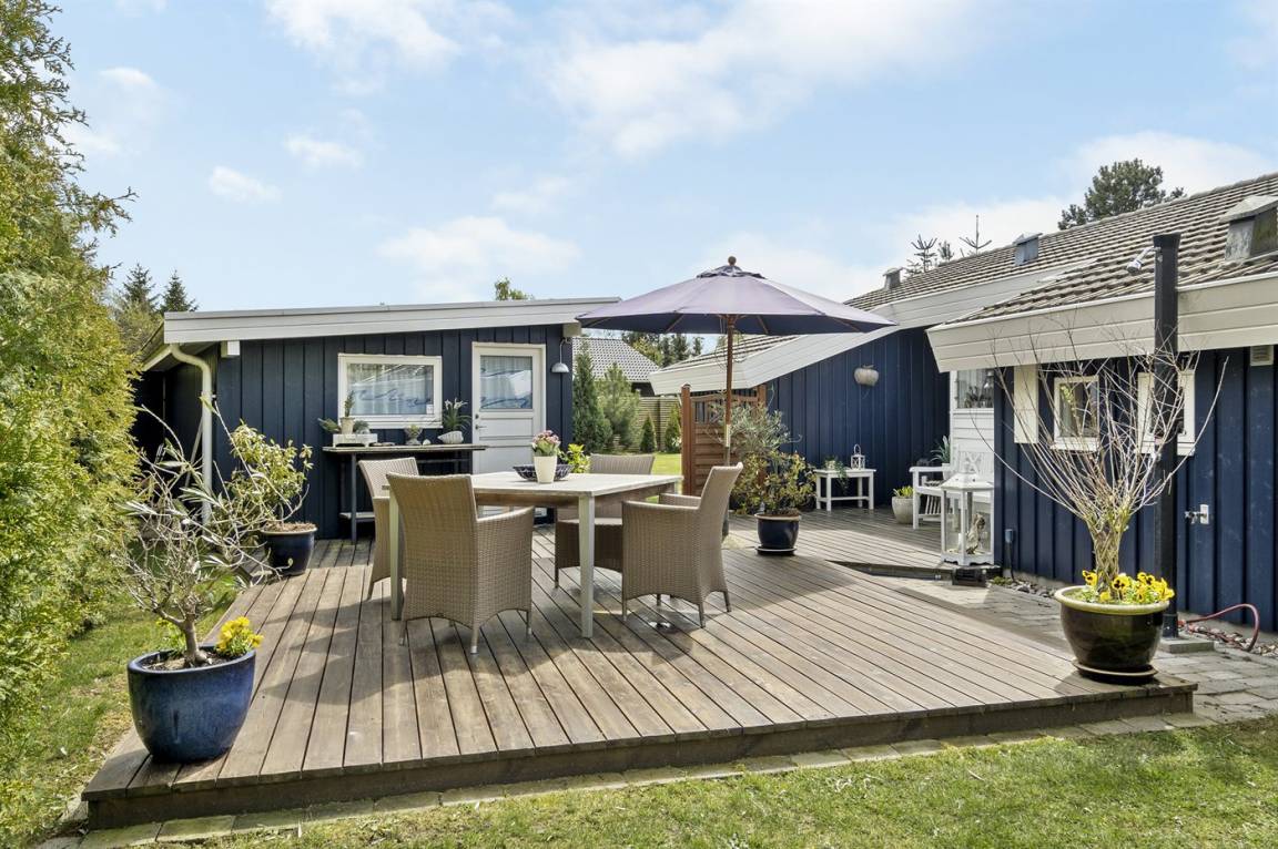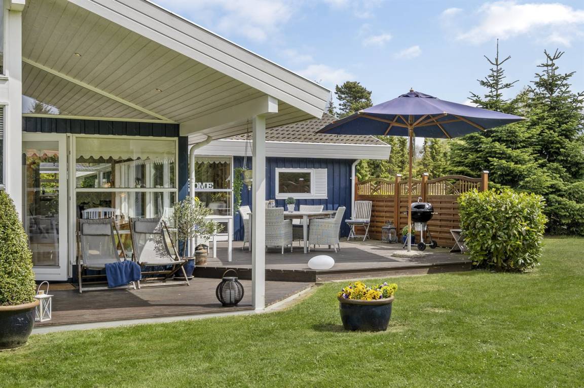 Dieses besonders schöne Ferienhaus strahlt Licht, Wärme und Gemütlichkeit aus und ist der perfekte Ort, um einen entspannenden Urlaub zu verbringen. Es liegt in einer ruhigen und friedlichen Gegend, ganz zurückgezogen am Ende einer stillen Sackgasse, nur einen kurzen Spaziergang vom schönen Strand entfernt. Das Ferienhaus bietet drei wunderbare Terrassen, auf denen du Schutz vor Wind findest, die Sonne genießen oder einfach in der ruhigen Atmosphäre ein gutes Buch lesen kannst.