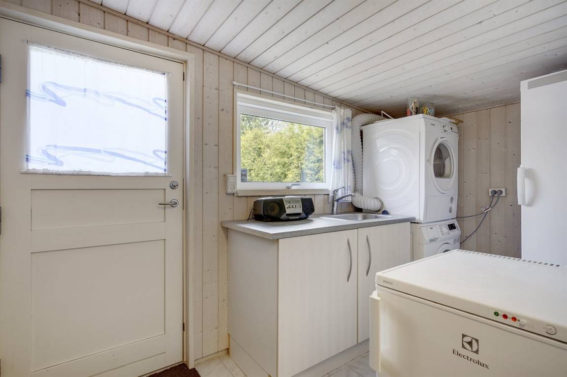 Im Gästehaus befinden sich sowohl eine Waschmaschine, ein Wäschetrockner als auch ein Gefrierschrank mit 120 Litern Nutzinhalt.