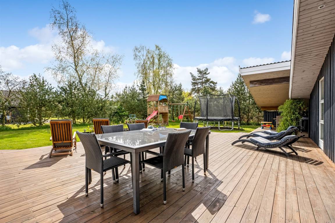 DraußenDie Ferienunterkunft liegt auf einem 939 m² großen Gartengrundstück. Die Entfernung zum Meer beträgt 700 m. Die nächste Einkaufsmöglichkeit liegt 1000 m entfernt. In einem Abstand von 5000 m gibt es einen Golfplatz. Es steht ein offenes Terrassenareal zur Verfügung. Außerdem gibt es überdachte Terrasse. Schaukel. Sandkasten. Trampolin. Spielturm. Rutsche. Es steht ein Grill zur Verfügung. Es ist ein Ladestecker für Elektroautos installiert. CEE Stecker. Parkplatz auf dem Grundstück.