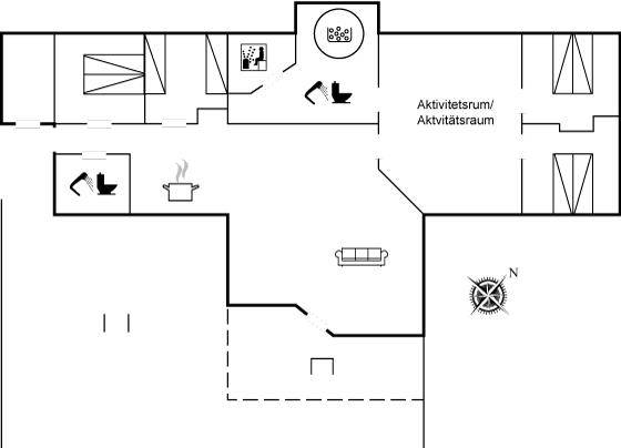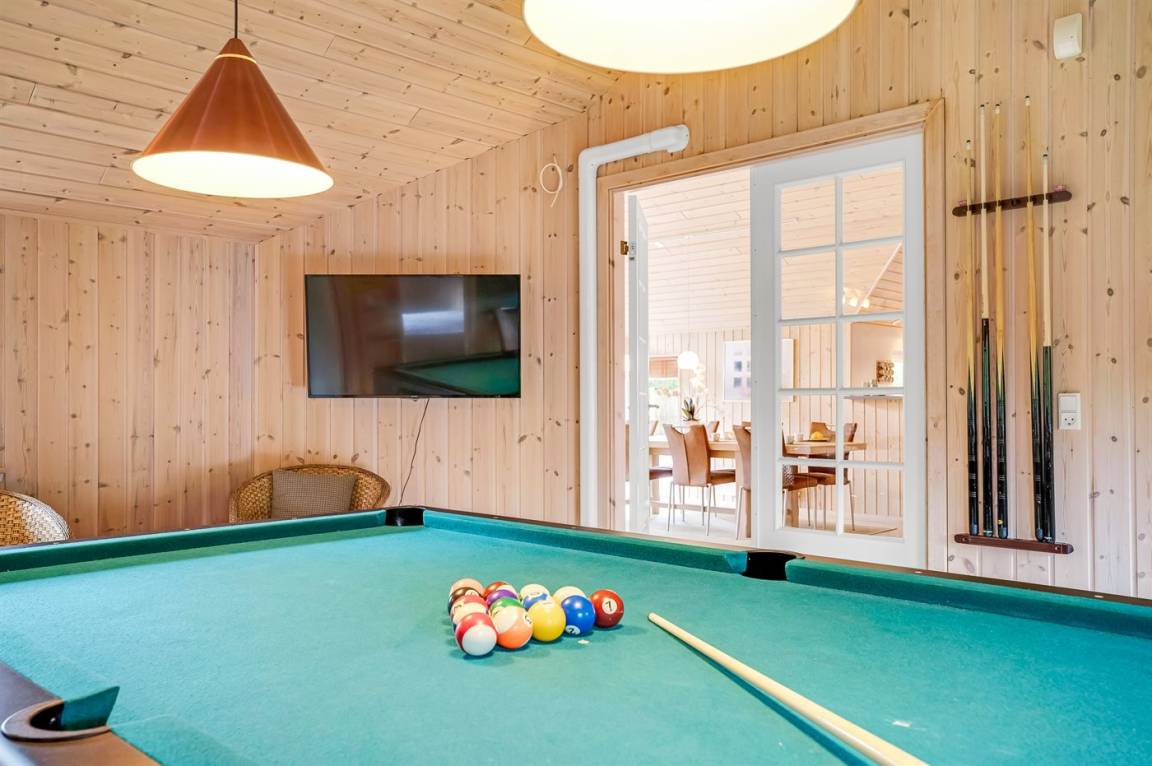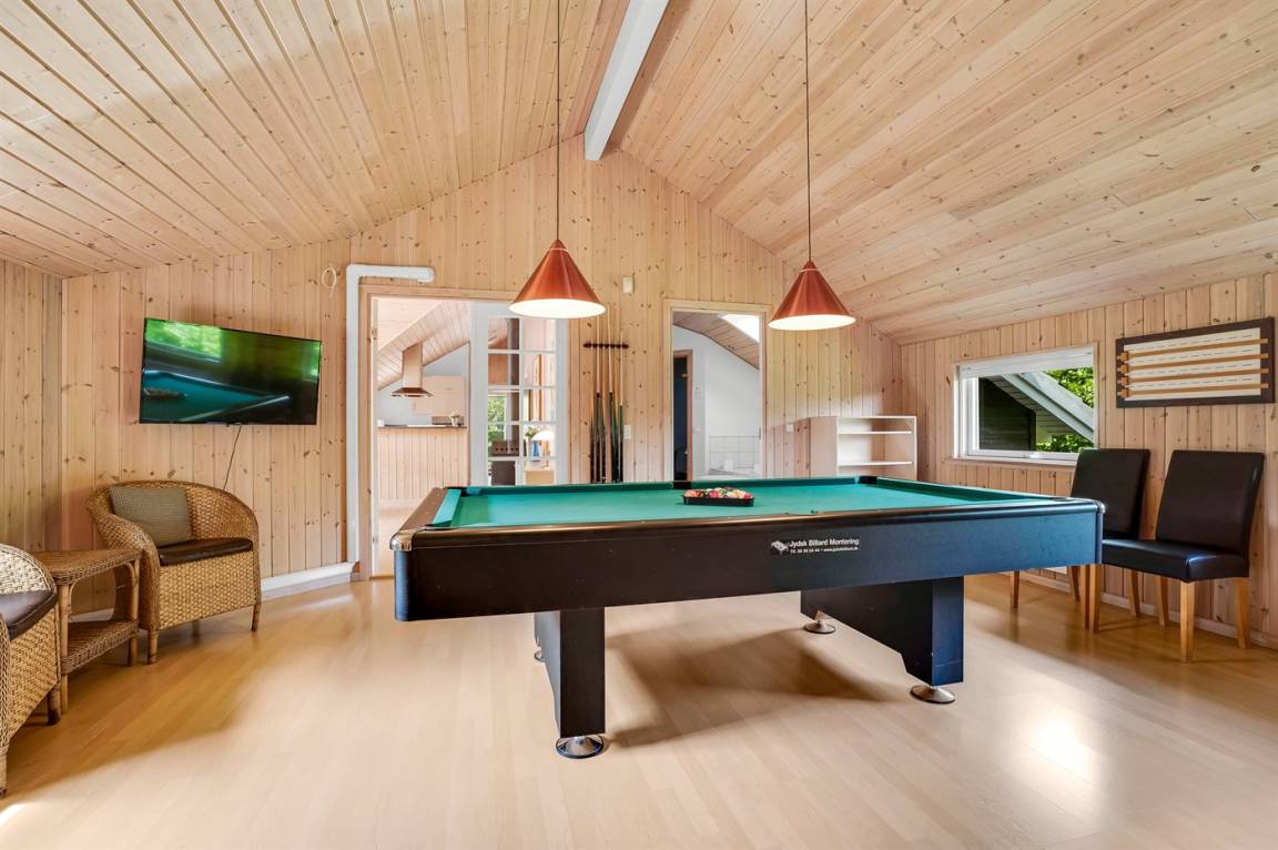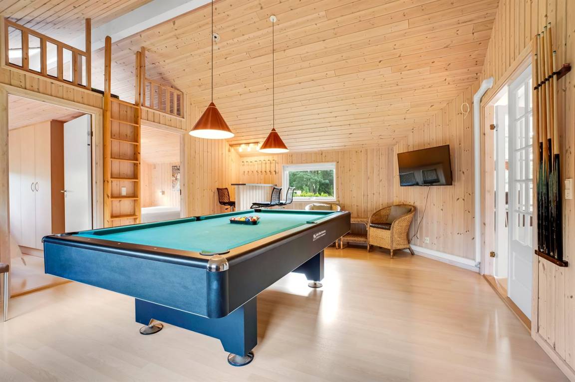 Das Ferienhaus verfügt außerdem über eine schöne große, geschlossene und überdachte Terrasse mit viel Platz zum Sonnenbaden, Grillen und stundenlangen Entspannen. Auf dem Grundstück gibt es zudem ein Fußballtor. Der Aktivitätsraum bietet Billard, Dart und einen Pooltisch, in dem man sich mit Freunden und Familie viel Spaß haben kann.