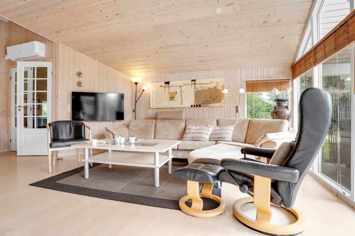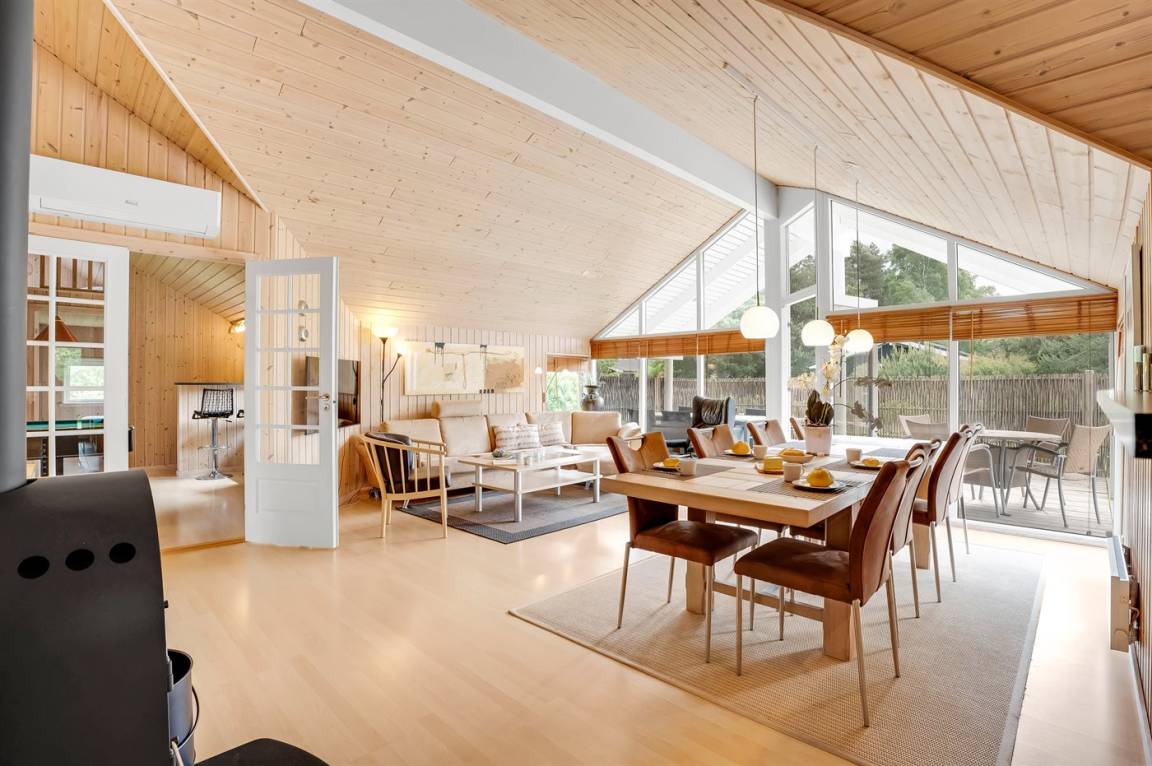 Das Ferienhaus eignet sich für 12 Personen. Die Ferienunterkunft hat eine Wohnfläche von 134 m² und wurde 2006 gebaut. Haustiere dürfen nicht mitgebracht werden. Die Ferienunterkunft ist mit 2 energiefreundliche Luft-Luft-Wärmepumpen ausgestattet. Fußbodenheizung im Flur. Die Ferienunterkunft ist mit Waschmaschine ausgestattet. Wäschetrockner. Tiefkühlmöglichkeit mit 100 Liter Nutzinhalt. Es gibt außerdem einen Kaminofen. Für die jüngsten Feriengäste ist 1 Kinderhochstuhl vorhanden.