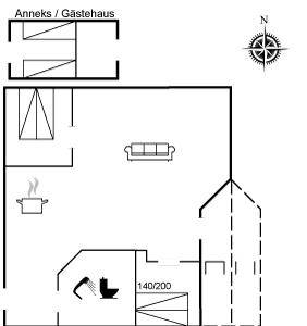 SchlafverhältnisseDie Schlafplätze verteilen sich auf 3 Schlafräume. 4 Schlafplätze in Doppelbetten. 2 Schlafplätze in Einzelbetten. 2 von diesen Schlafplätzen befinden sich im Gästehaus.
