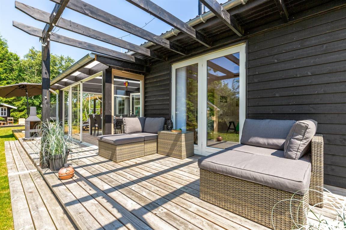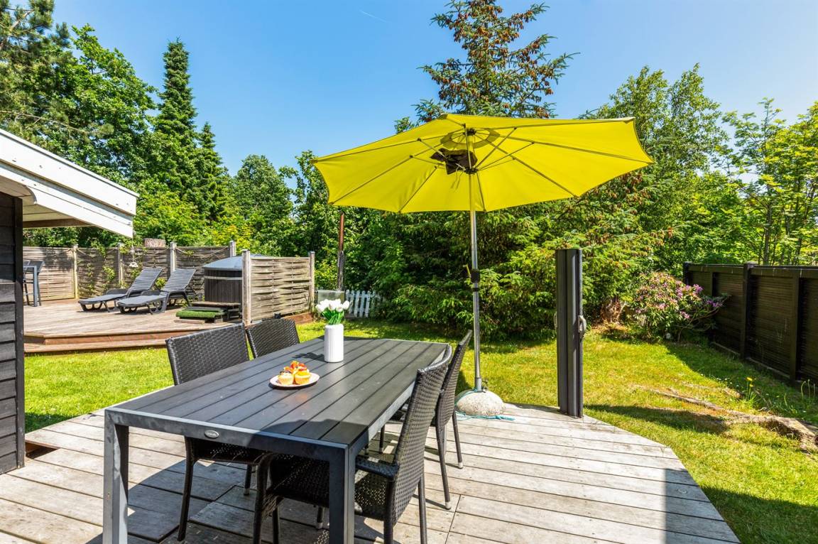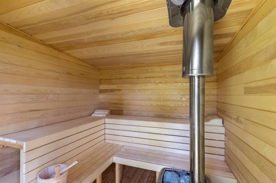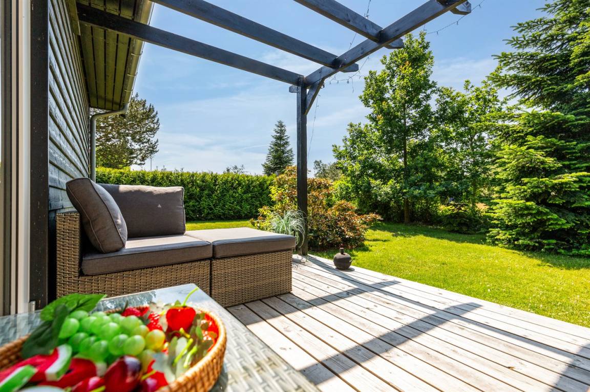 DraußenDie Ferienunterkunft liegt auf einem 1200 m² großen Naturgrundstück. Die Entfernung zum Meer beträgt 700 m. Die nächste Einkaufsmöglichkeit liegt 800 m entfernt. Es steht ein offenes Terrassenareal zur Verfügung. Geräteraum. Schaukel. Rutsche. Außensauna, die mit Brennholz beheizt wird. Es steht ein Grill zur Verfügung. Parkplatz auf dem Grundstück.