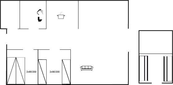 SchlafverhältnisseDie Schlafplätze verteilen sich auf 2 Schlafräume. 2 Schlafplätze in einem Doppelbett. 2 Schlafplätze in Einzelbetten.