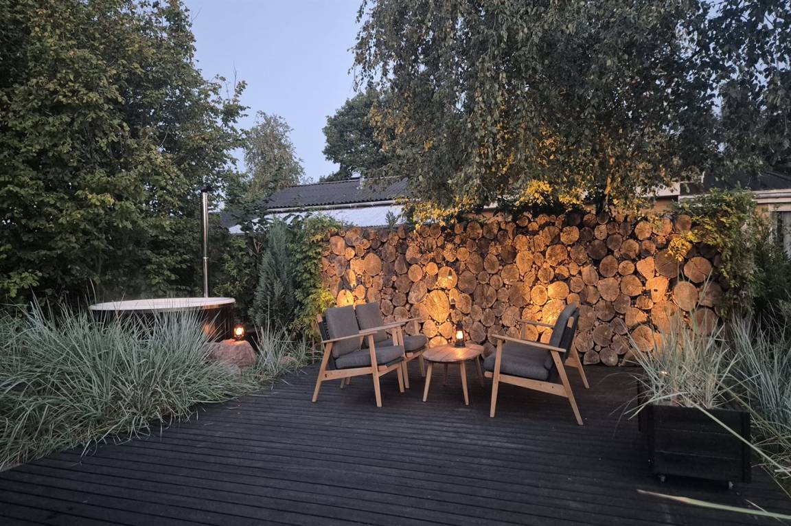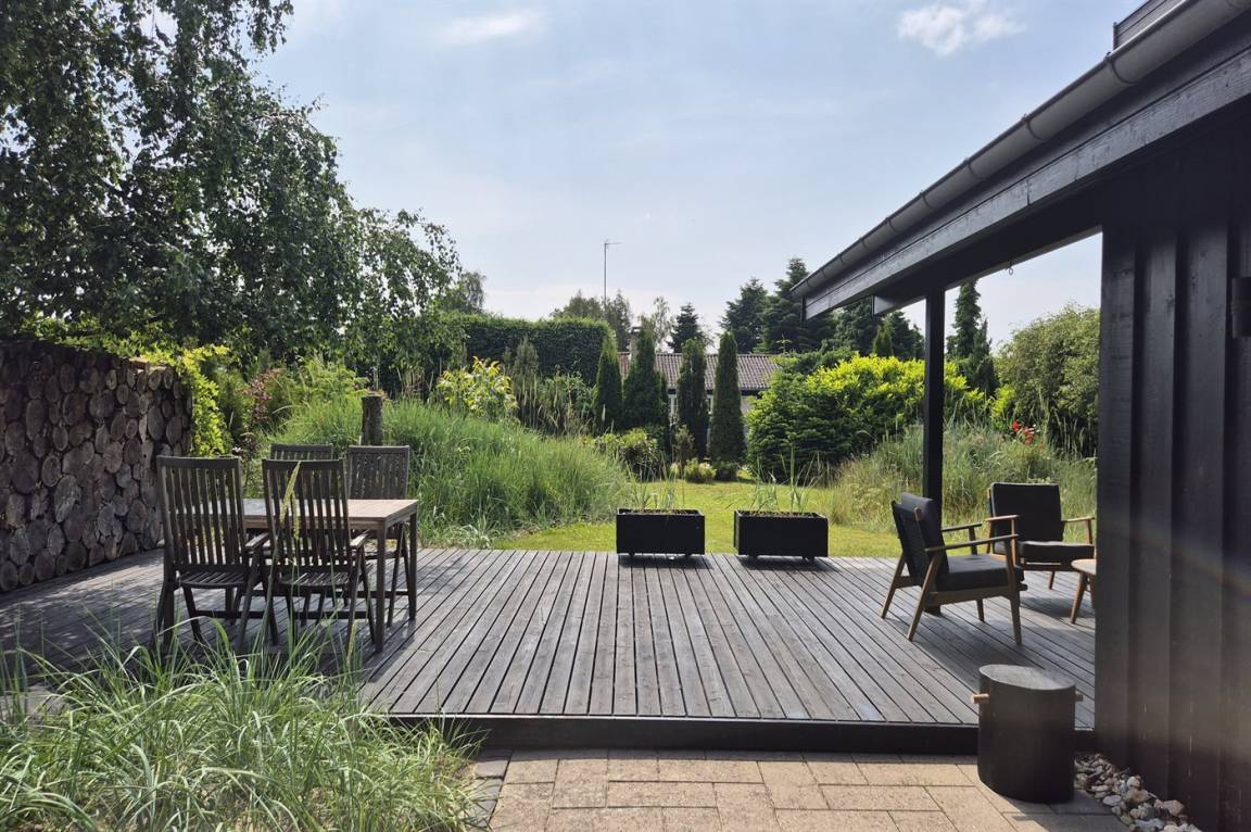 DraußenDie Ferienunterkunft liegt auf einem 1000 m² großen Naturgrundstück. Die Entfernung zum Meer beträgt 700 m. Die nächste Einkaufsmöglichkeit liegt 500 m entfernt. Es steht ein 100 m² Terrassenareal zur Verfügung. Außerdem gibt es 20 m² überdachte Terrasse. Es gibt ein Trampolin (inground 330x220 cm).Lagerfeuerstelle. Es steht ein Carport zur Verfügung. Es ist ein Ladestecker für Elektroautos installiert. Mit einer Ladeleistung von 11 kW. Parkplatz auf dem Grundstück.