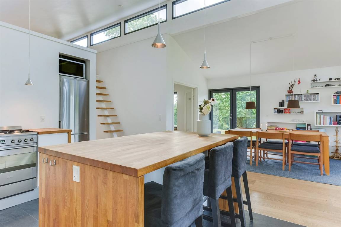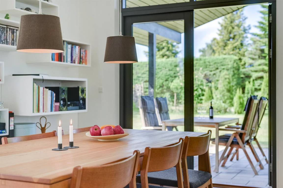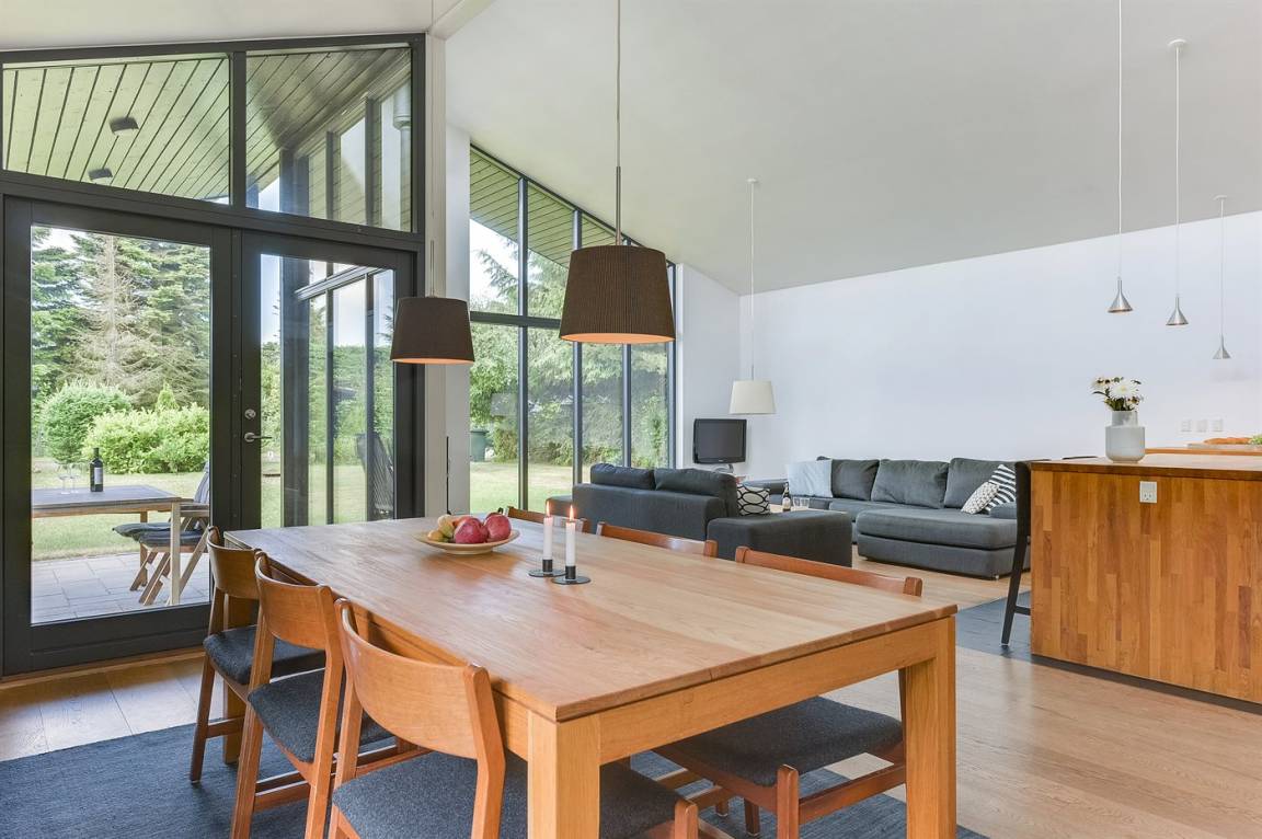 Dieses herrliche, sehr moderne Ferienhaus liegt auf einem schönen Naturgrundstück dicht an einem der besten Badestrände Dänemarks. Innen tritt das Haus besonders hell und freundlich vor mit großen Panoramafenstern im Wohnzimmer mit schrägenden Decken.