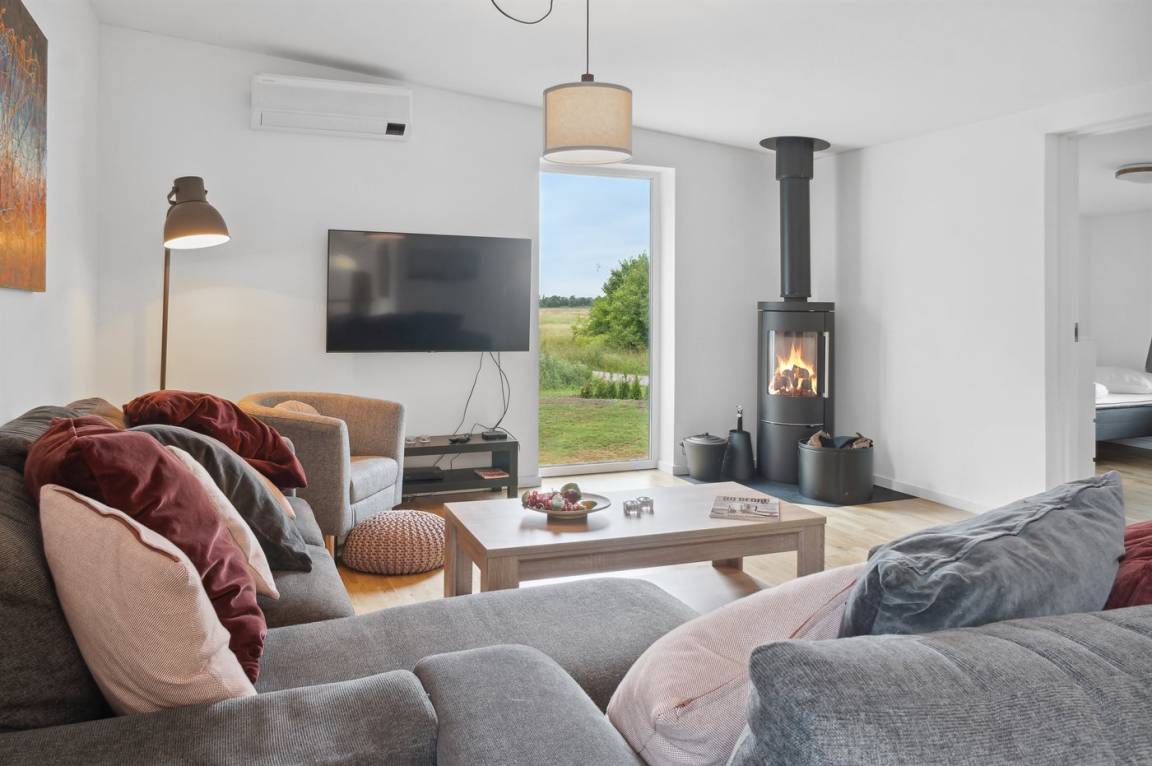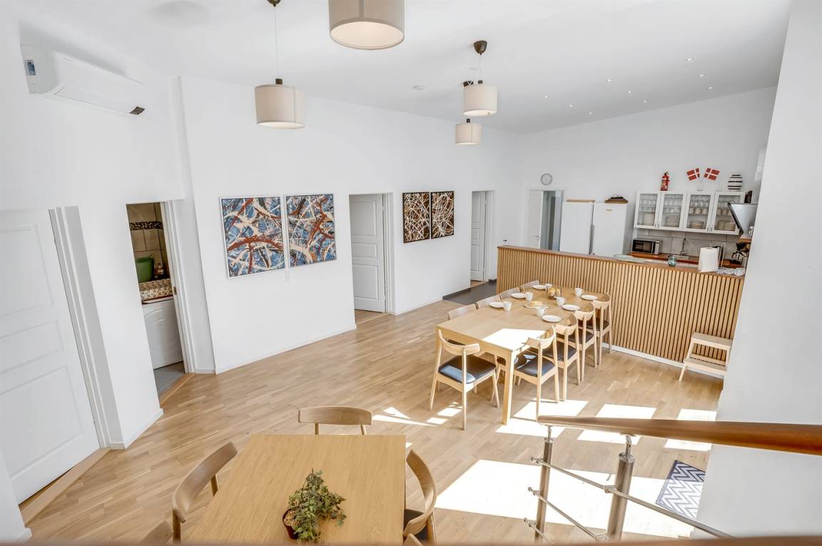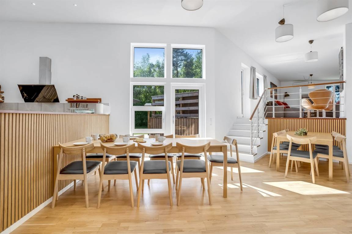 Das Ferienhaus eignet sich für 18 Personen. 2 der Schlafplätze eignen sich jedoch nur für größere Kinder (4-11 Jahre). Die Ferienunterkunft hat eine Wohnfläche von 338 m², ist 2-stöckig, und wurde 2021 gebaut. Haustiere dürfen nicht mitgebracht werden. Die Ferienunterkunft ist mit 2 energiefreundlichen Luft-Wasser-Wärmepumpen ausgestattet. Fußbodenheizung in allen Räumen. Die Ferienunterkunft ist mit Waschmaschine ausgestattet. Wäschetrockner. Tiefkühlmöglichkeit mit 100 Liter Nutzinhalt. Es gibt außerdem einen Kaminofen. Für die jüngsten Feriengäste sind 2 Kinderhochstühle vorhanden.