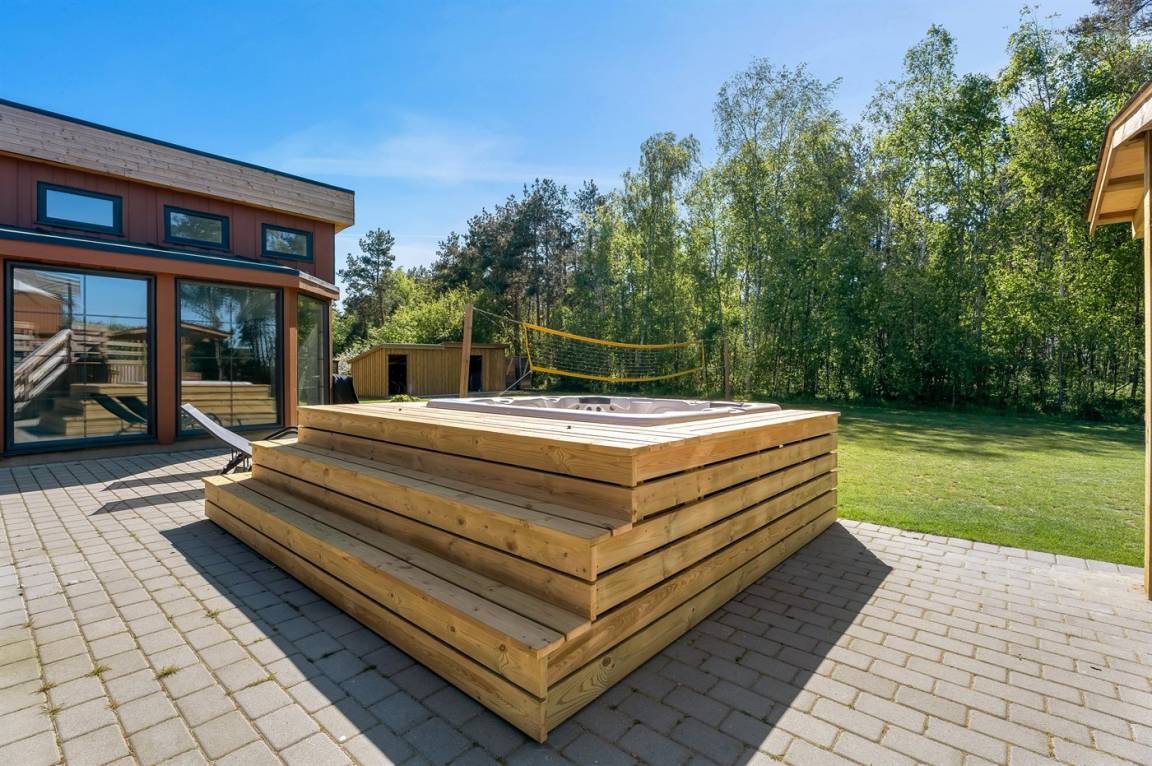DraußenDie Ferienunterkunft liegt auf einem 2200 m² großen Naturgrundstück. Die Entfernung zum Meer beträgt 700 m. Die nächste Einkaufsmöglichkeit liegt 1500 m entfernt. Es steht ein offenes Terrassenareal zur Verfügung. Schaukel. Sandkasten. Spielturm. Rutsche. Fußballtor.Lagerfeuerstelle. Es steht ein überdachter gemauerter Grill zur Verfügung. Es ist ein Ladestecker für Elektroautos installiert. Ladestecker Typ 2. Mit einer Ladeleistung von 11 kW. Parkplatz auf dem Grundstück.
