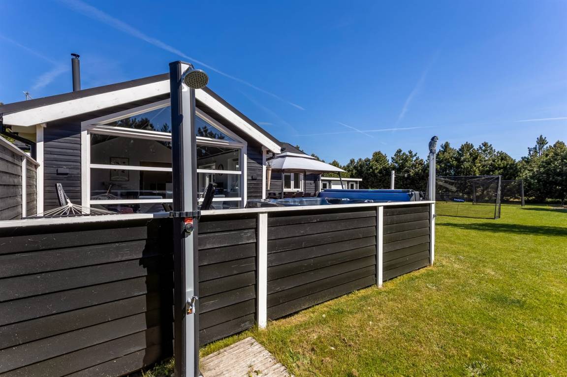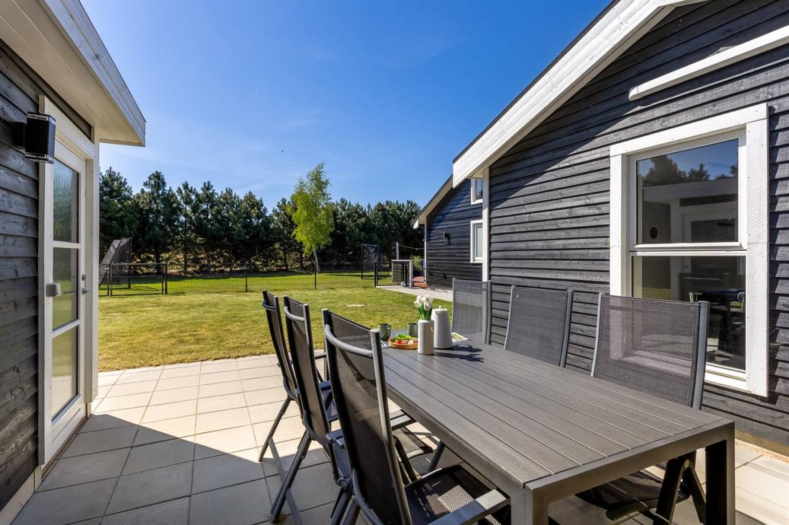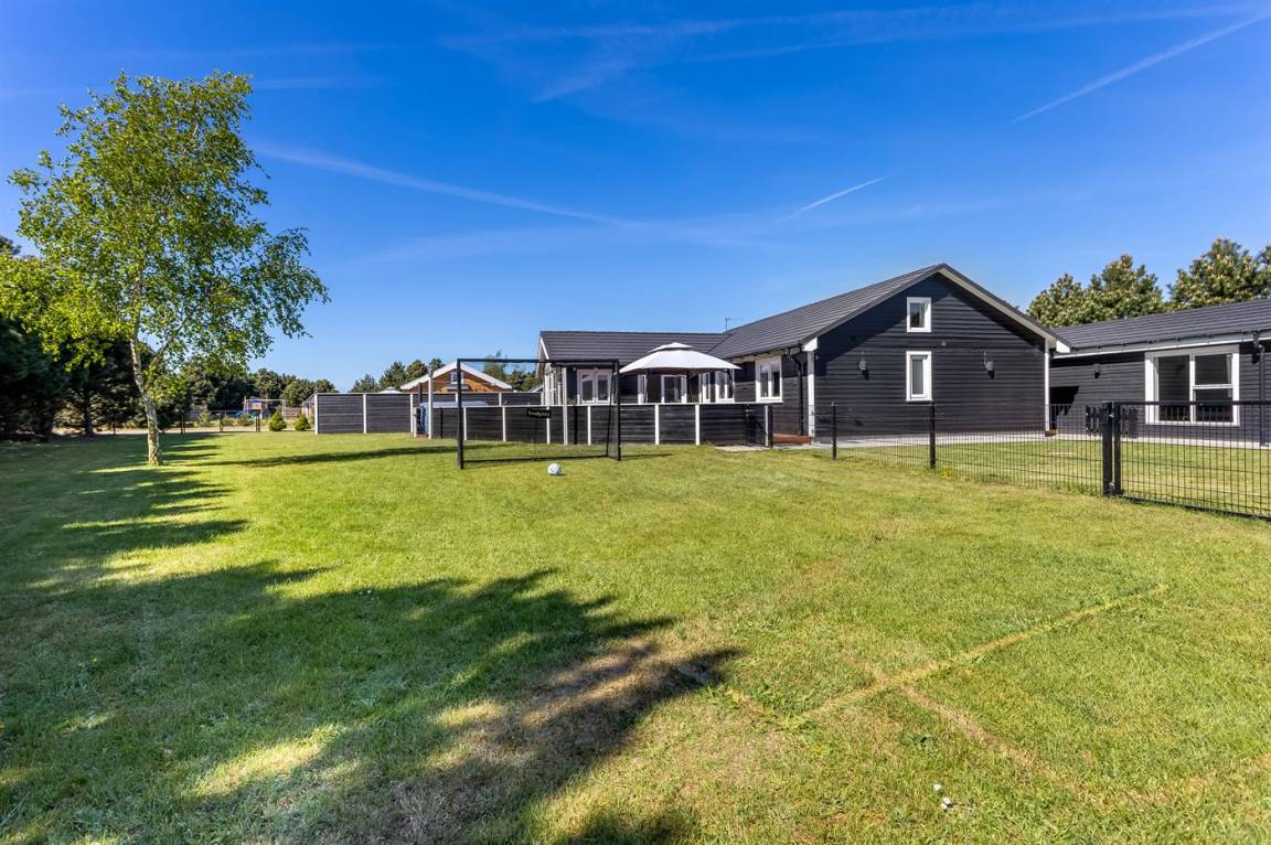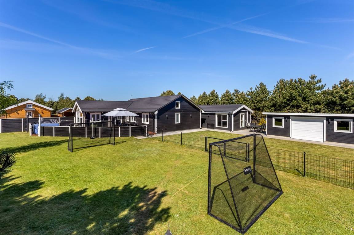 DraußenDie Ferienunterkunft liegt auf einem 1455 m² großen Naturgrundstück. Das Grundstück ist eingezäunt. Die Entfernung zum Meer beträgt 1300 m. Die nächste Einkaufsmöglichkeit liegt 1000 m entfernt. In einem Abstand von 1000 m gibt es einen Golfplatz. Es steht ein geschlossenes Terrassenareal zur Verfügung. Trampolin. Fußballtor.Lagerfeuerstelle. Es steht ein Grill zur Verfügung. Es ist ein Ladestecker für Elektroautos installiert. Ladestecker Typ 2. Mit einer Ladeleistung von 11 kW. Parkplatz auf dem Grundstück.