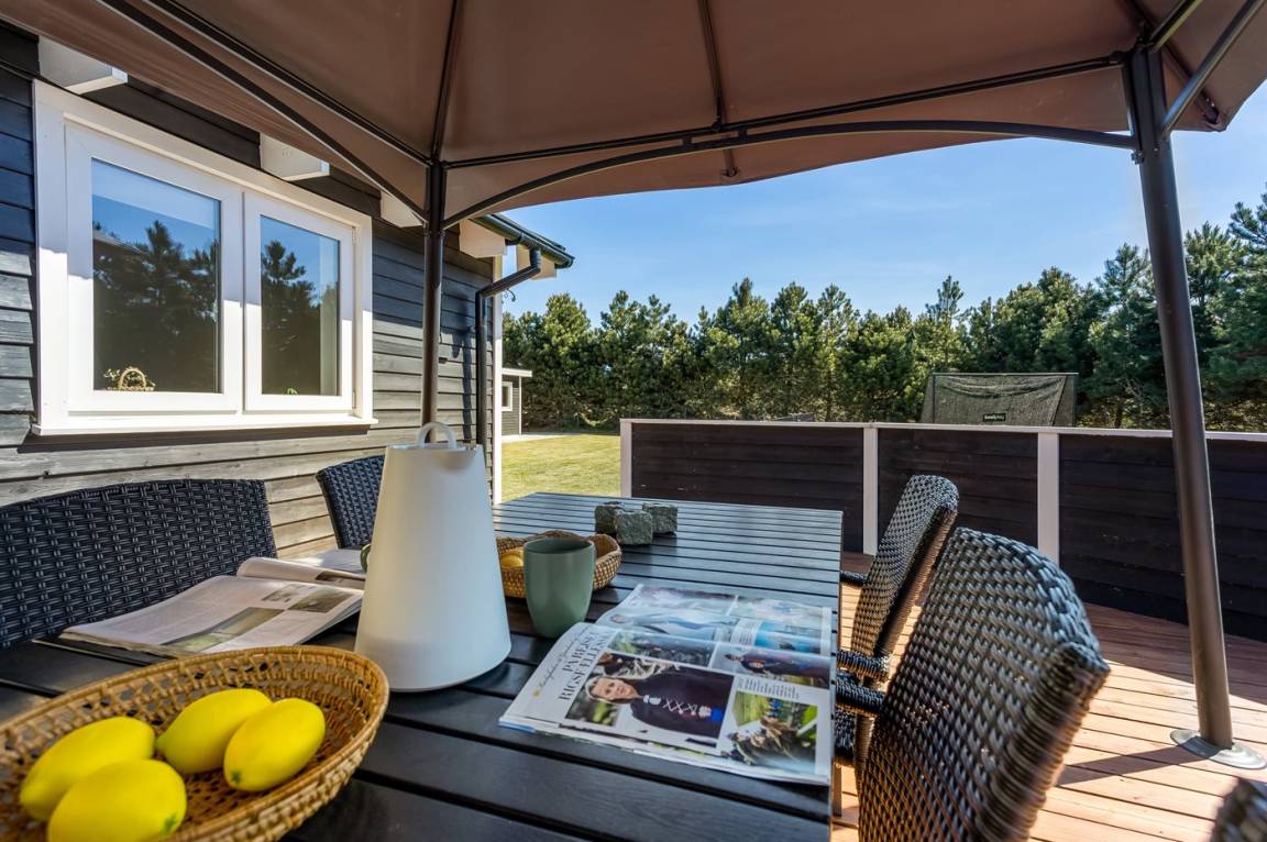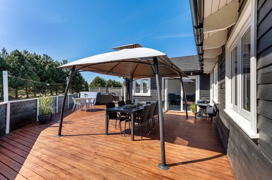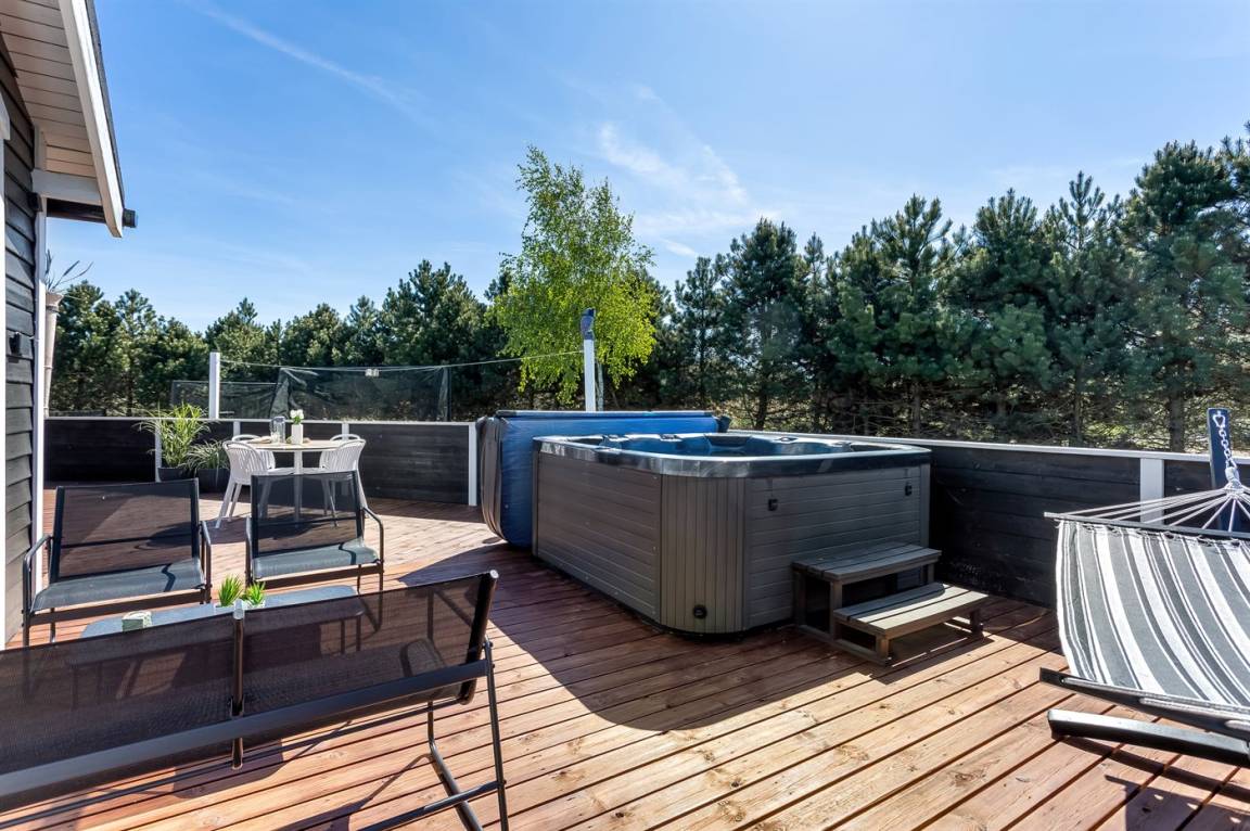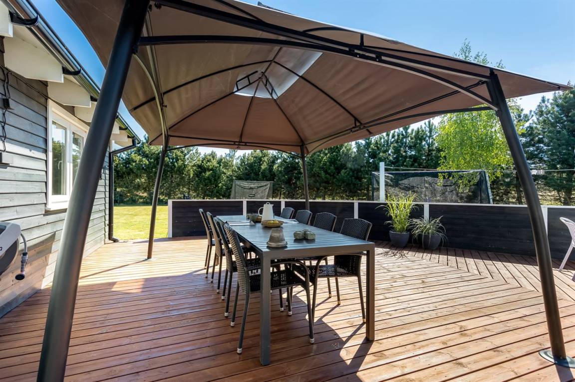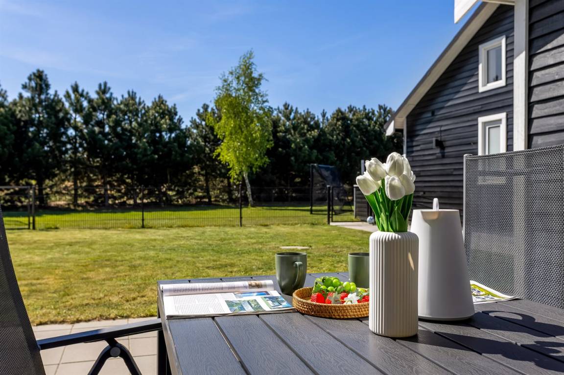 DraußenDie Ferienunterkunft liegt auf einem 1455 m² großen Naturgrundstück. Das Grundstück ist eingezäunt. Die Entfernung zum Meer beträgt 1300 m. Die nächste Einkaufsmöglichkeit liegt 1000 m entfernt. In einem Abstand von 1000 m gibt es einen Golfplatz. Es steht ein geschlossenes Terrassenareal zur Verfügung. Trampolin. Fußballtor.Lagerfeuerstelle. Es steht ein Grill zur Verfügung. Es ist ein Ladestecker für Elektroautos installiert. Ladestecker Typ 2. Mit einer Ladeleistung von 11 kW. Parkplatz auf dem Grundstück.