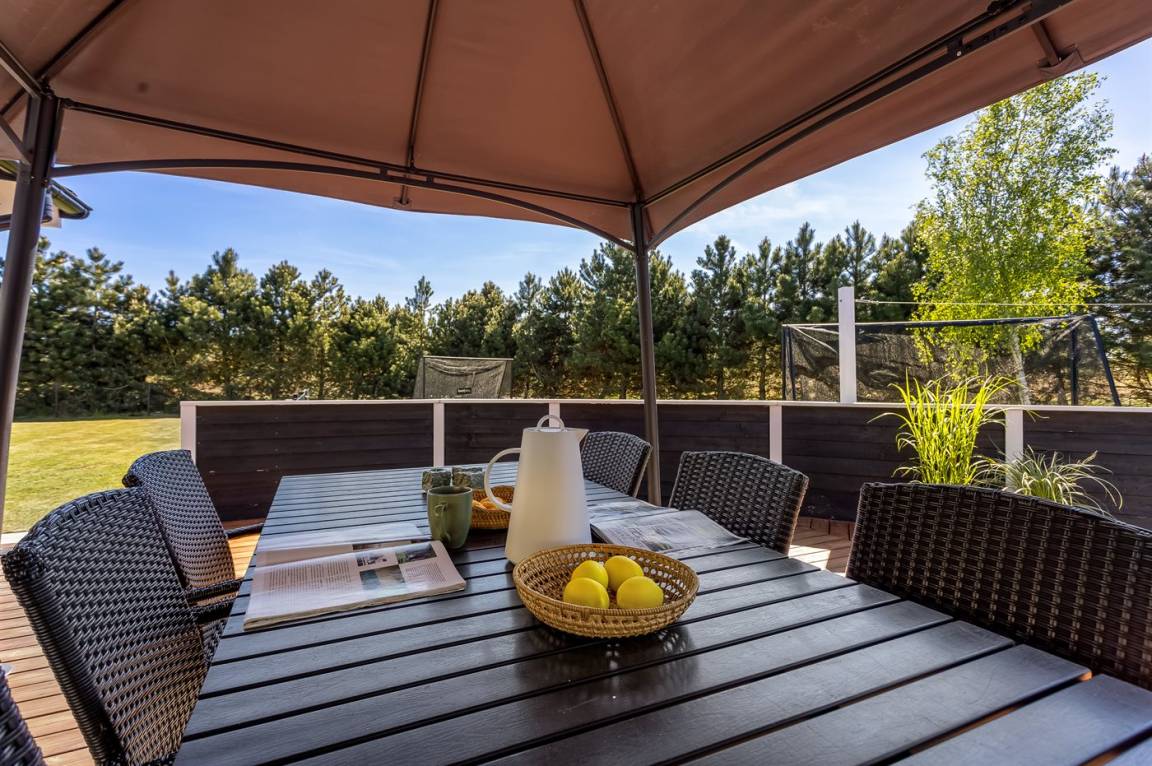 Es gibt eine teilweise überdachte Terrasse mit Gartenmöbeln und Grill, wo du herrliche Stunden im Freien und gemütliche Grillabende mit der Familie oder mit Freunden genießen kannst. Außerdem steht dir ein 6-Personen-Whirlpool mit Standwasser zur Verfügung, in dem du das warme Wasser genießen, die Schultern senken und ganz einfach nur die Seele baumeln lassen kannst.