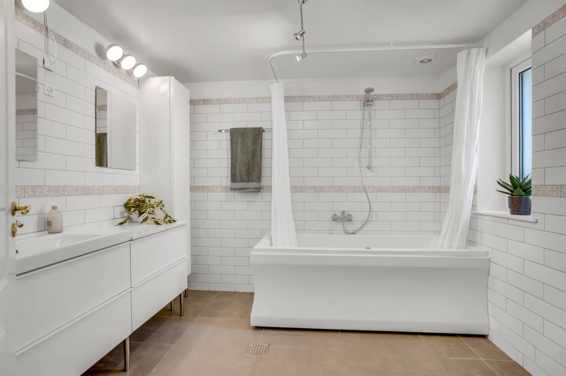 WC und BadEs gibt 1 Badezimmer mit Fußbodenheizung, Badewanne sowie Handbrause und 1 Badezimmer mit Fußbodenheizung und Duschnische.
