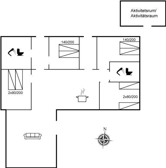 SchlafverhältnisseDie Schlafplätze verteilen sich auf 4 Schlafräume. 8 Schlafplätze in Doppelbetten. 2 Schlafplätze auf Matratzen. 2 von diesen Schlafplätzen befinden sich im offenen Obergeschoss. Ferner steht ein Kinderbett zur Verfügung.