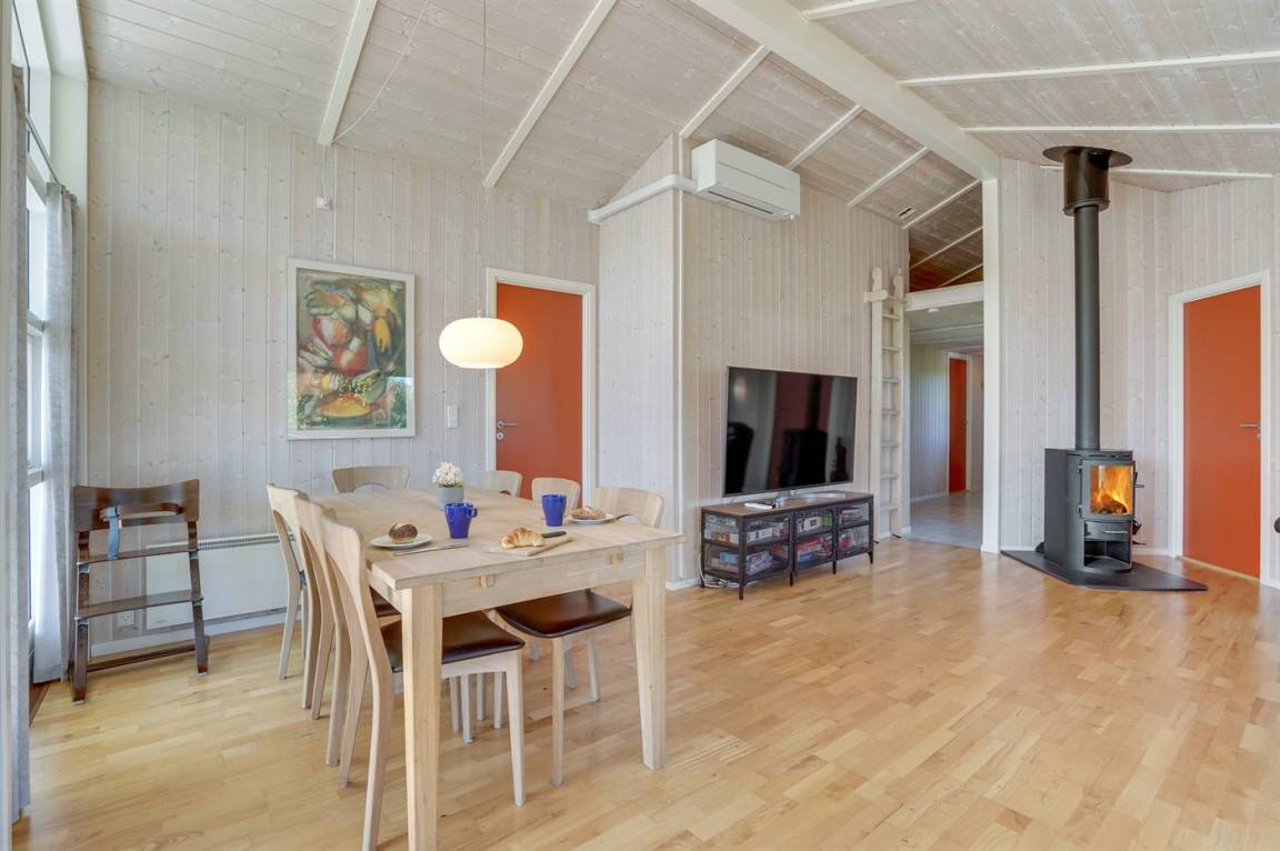 EinrichtungDas Ferienhaus eignet sich für 10 Personen sowie 1 Kleinkind bis zu 3 Jahren. Die Ferienunterkunft hat eine Wohnfläche von 105 m² und wurde 2005 gebaut. Haustiere dürfen nicht mitgebracht werden. Die Ferienunterkunft ist mit energiesparender Wärmepumpe ausgestattet. Die Ferienunterkunft ist mit Waschmaschine ausgestattet. Wäschetrockner. Tiefkühlmöglichkeit mit 50 Liter Nutzinhalt. Es gibt außerdem einen Kaminofen. Für die jüngsten Feriengäste ist 1 Kinderhochstuhl vorhanden.