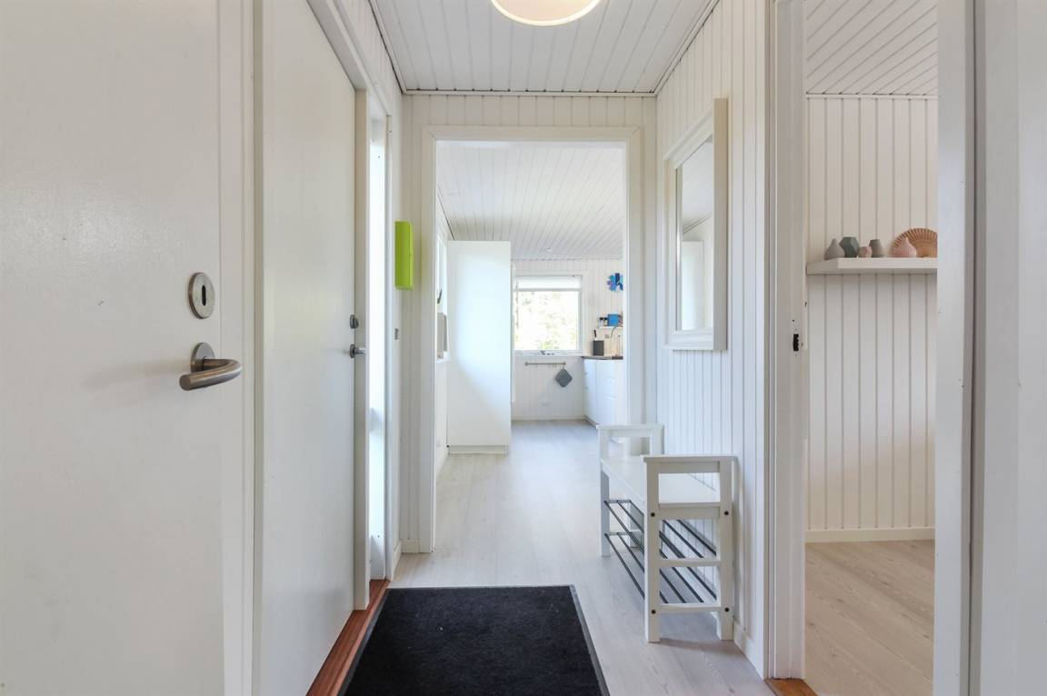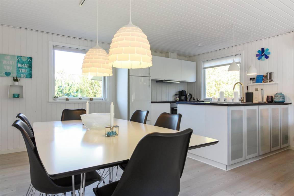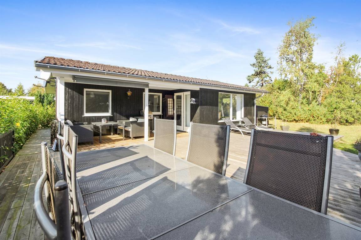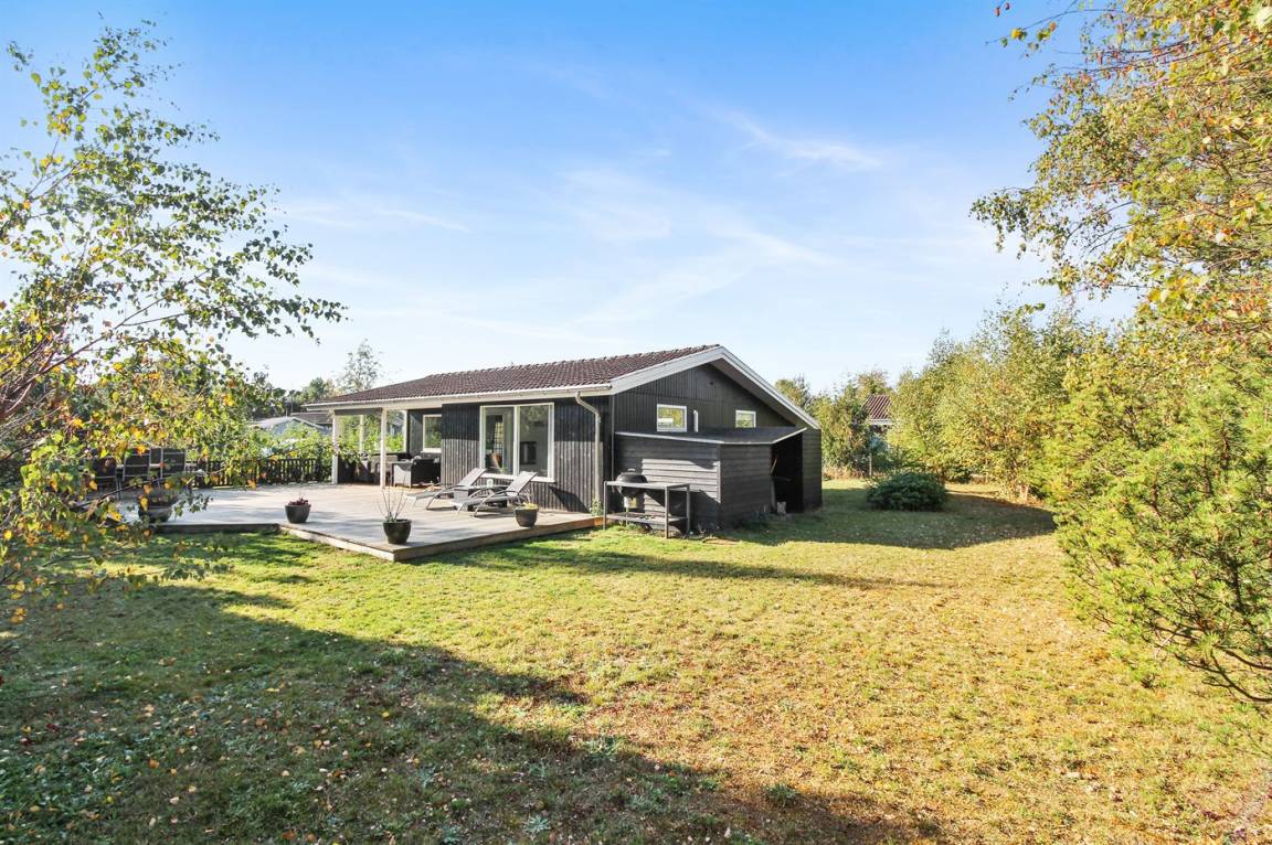 Dieses schöne und hell eingerichtete Ferienhaus liegt auf einem eingezäunten Grundstück mit Platz für Aktivitäten im Freien. Zum Haus gehört eine große und zum Teil überdachte Terrasse mit Gartenmöbeln.