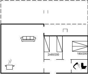 SchlafverhältnisseDie Schlafplätze verteilen sich auf 2 Schlafräume. 2 Schlafplätze in einem Doppelbett. 2 Schlafplätze in Einzelbetten.