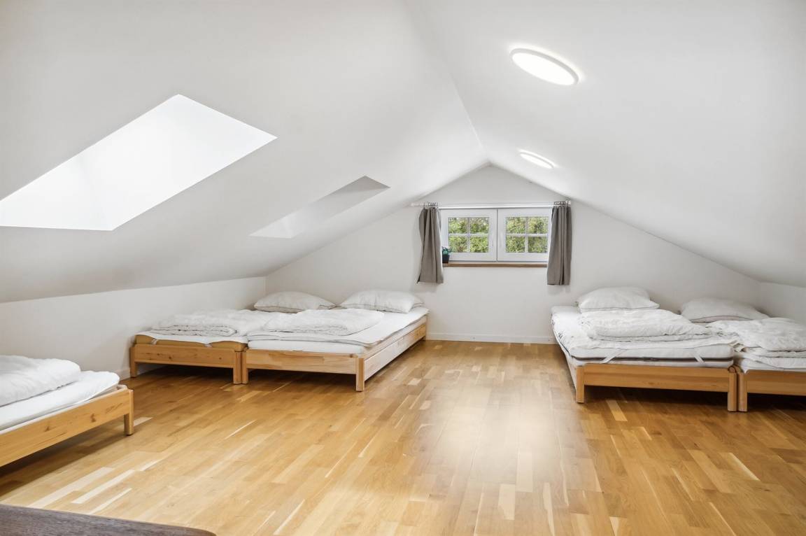 SchlafverhältnisseDie Schlafplätze verteilen sich auf 5 Schlafräume. 4 Schlafplätze in Doppelbetten. 11 Schlafplätze in Einzelbetten. 1 Schlafplatz auf einer Matratze.- 5 von diesen Schlafplätzen befinden sich im offenen Obergeschoss in Etagenbetten, and 1 Schlafplätz befindet sich im Obergeschloss in einem der Schlafzimmer. Ferner stehen 2 Kinderbetten zur Verfügung.
