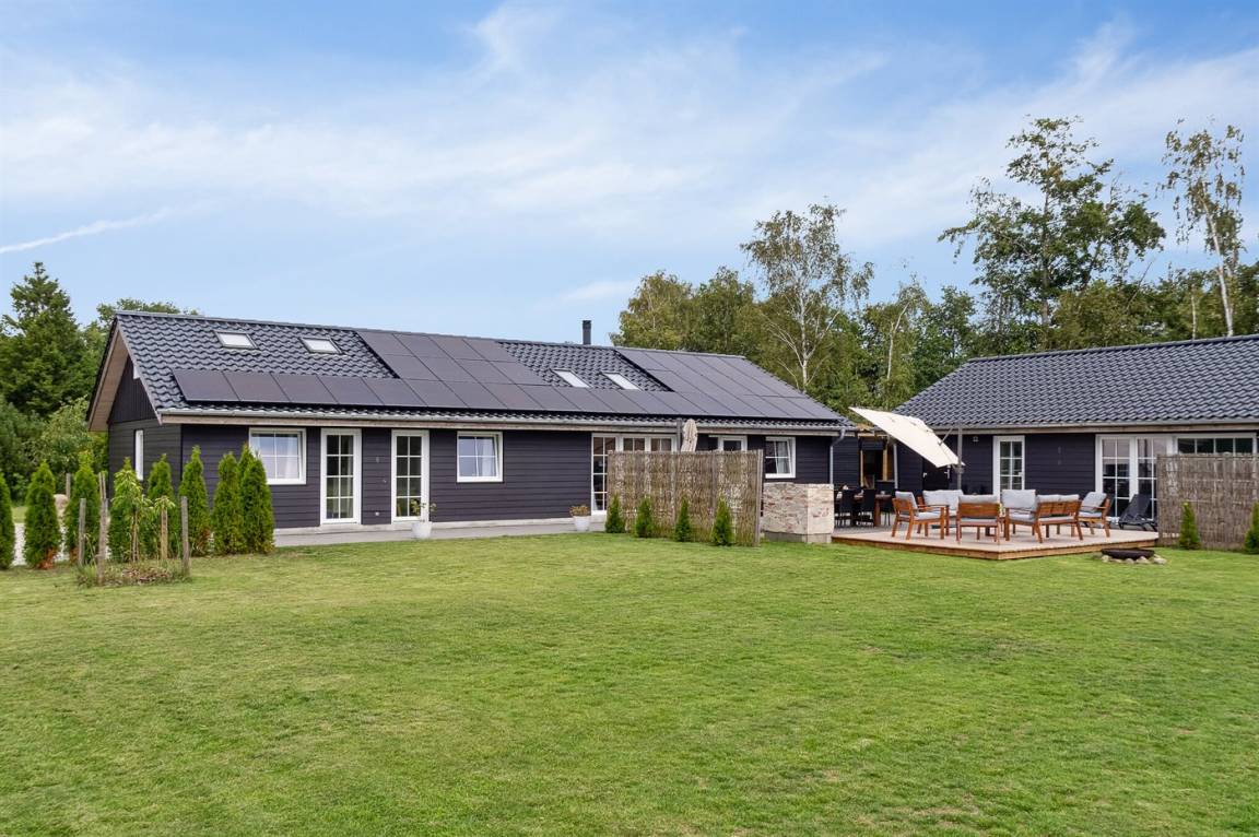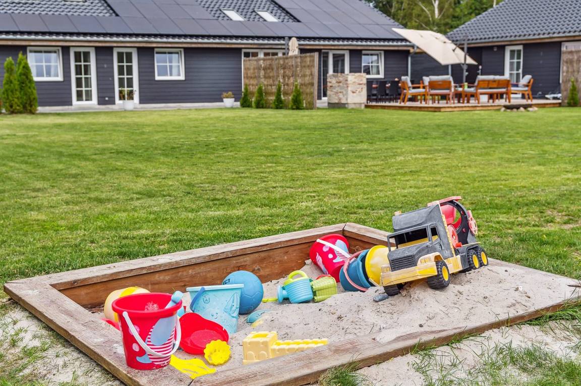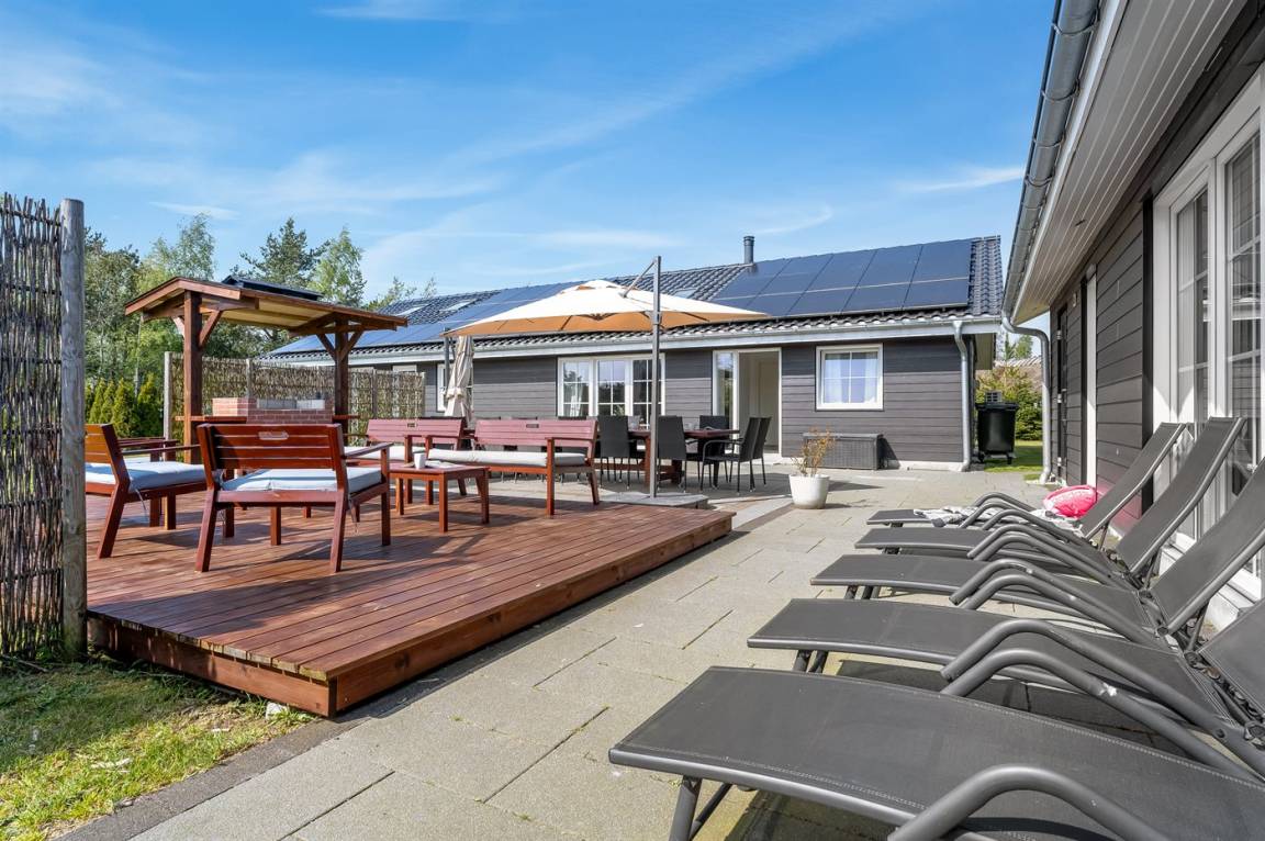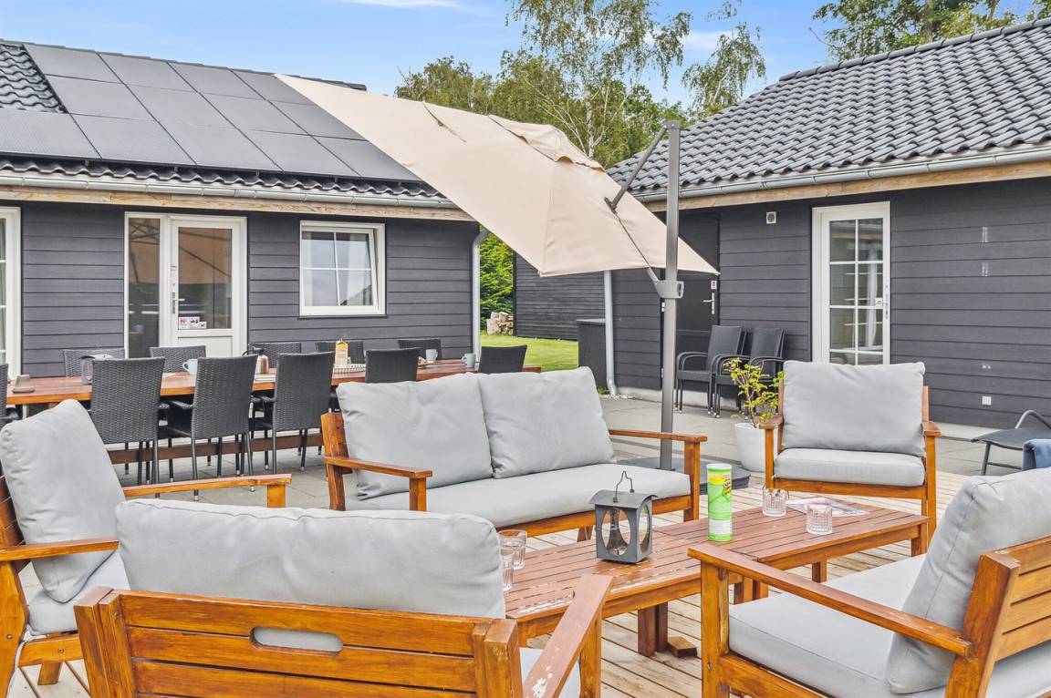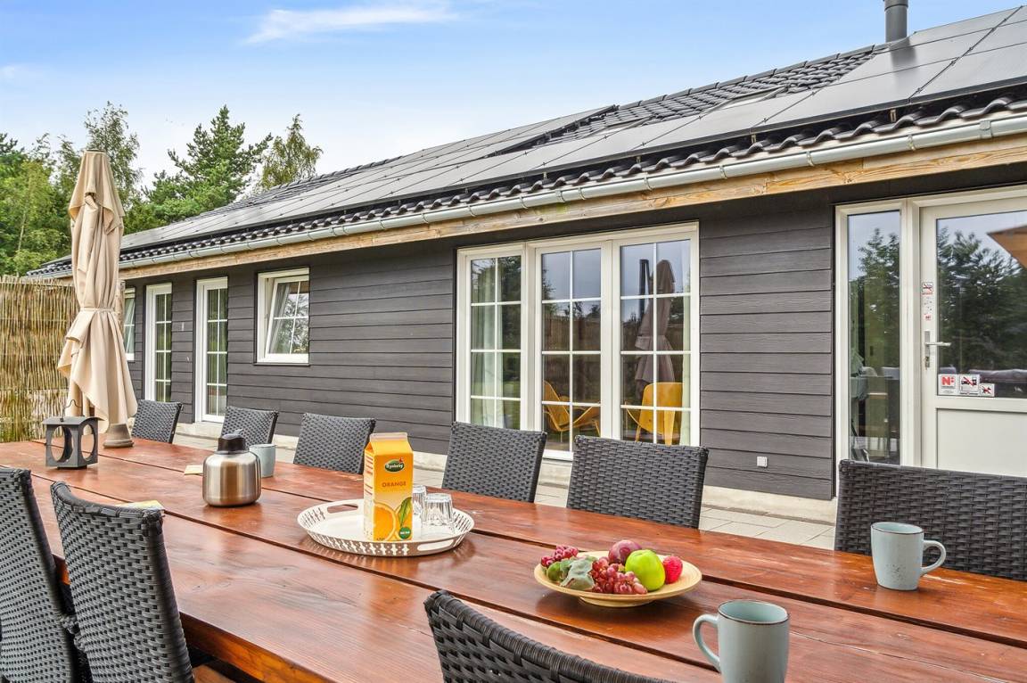 Das Ferienhaus eignet sich für 16 Personen. 5 der Schlafplätze eignen sich jedoch nur für größere Kinder (4-11 Jahre). Die Ferienunterkunft hat eine Wohnfläche von 280 m² und wurde 2019 gebaut. Haustiere dürfen nicht mitgebracht werden. Die Ferienunterkunft ist mit zwei energiefreundliche Luft-Luft-Wärmepumpen ausgestattet. Es gibt Solarwärme. Fußbodenheizung in allen Räumen. Die Ferienunterkunft ist mit Waschmaschine ausgestattet. Wäschetrockner. Tiefkühlmöglichkeit mit 100 Liter Nutzinhalt. Es gibt außerdem einen Kaminofen. Für die jüngsten Feriengäste ist 1 Kinderhochstuhl vorhanden.