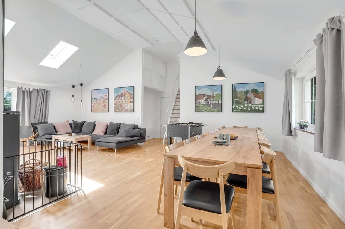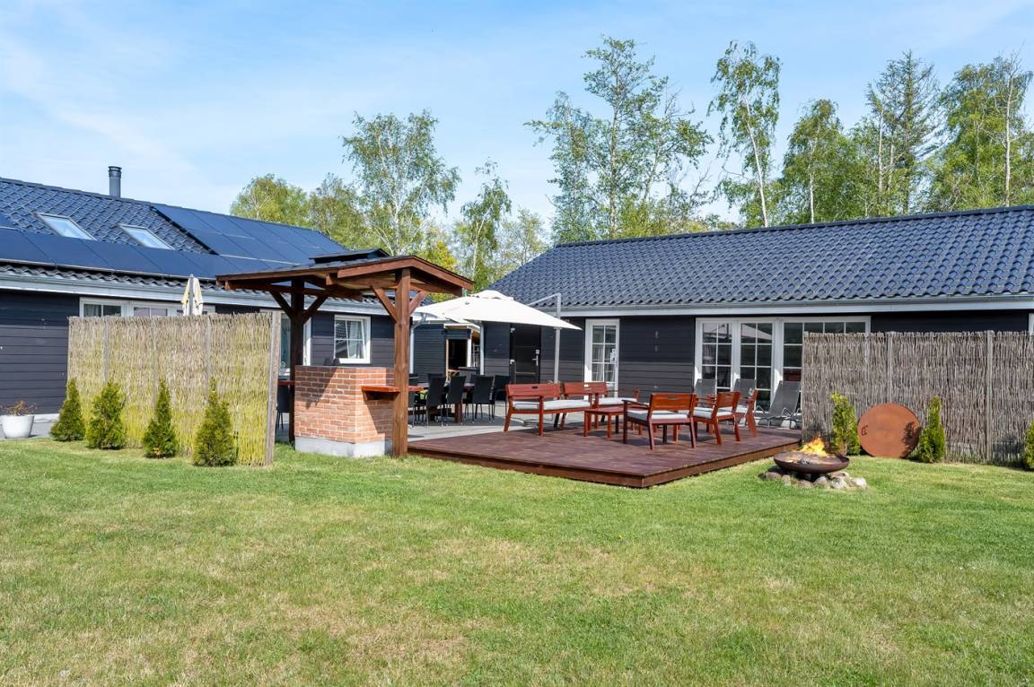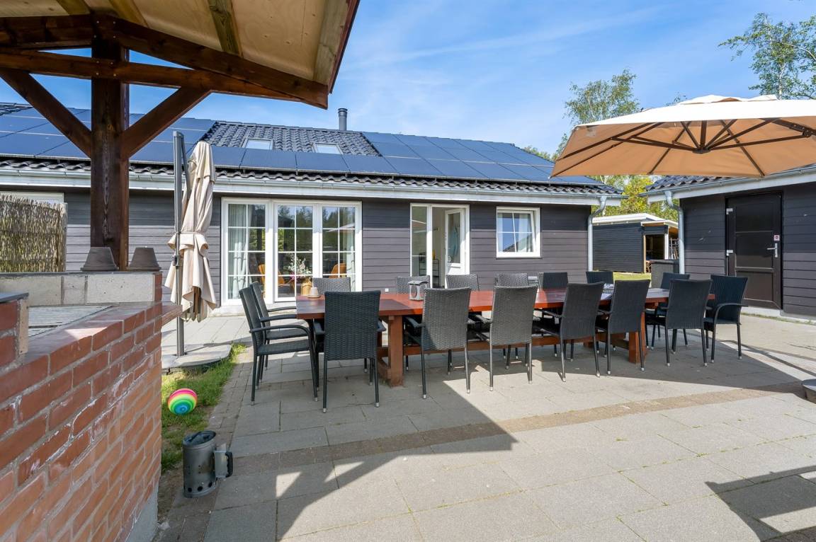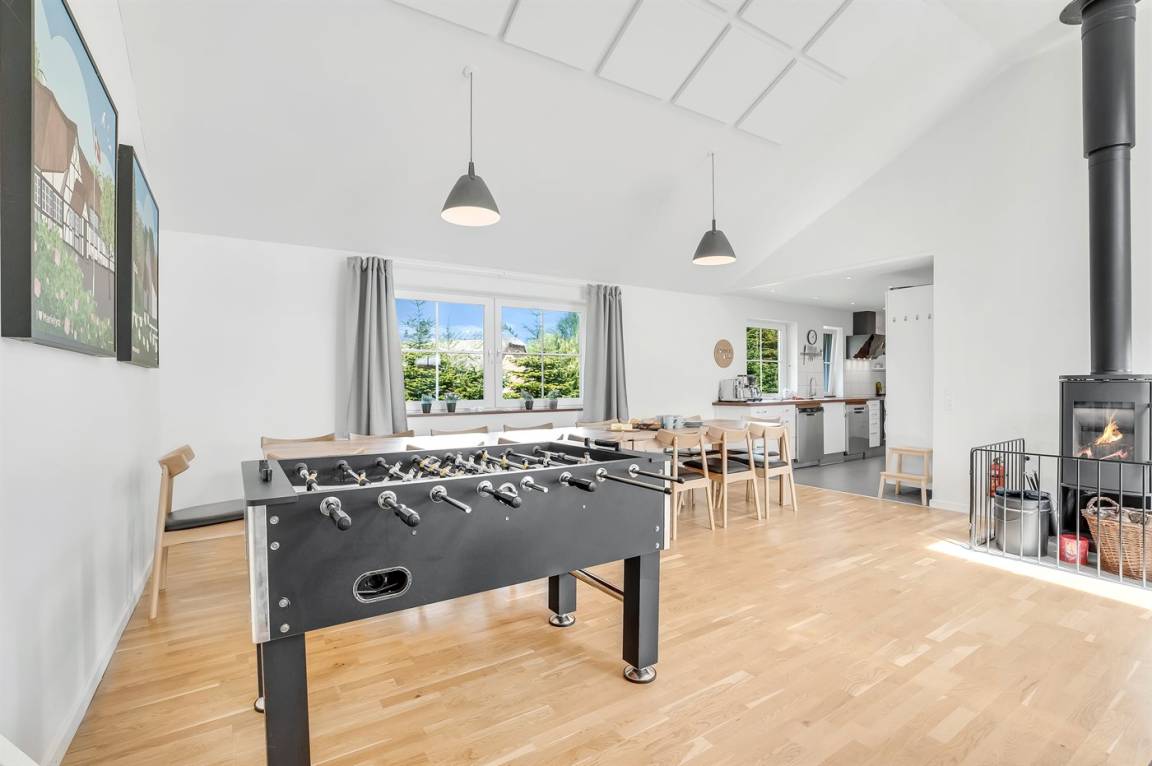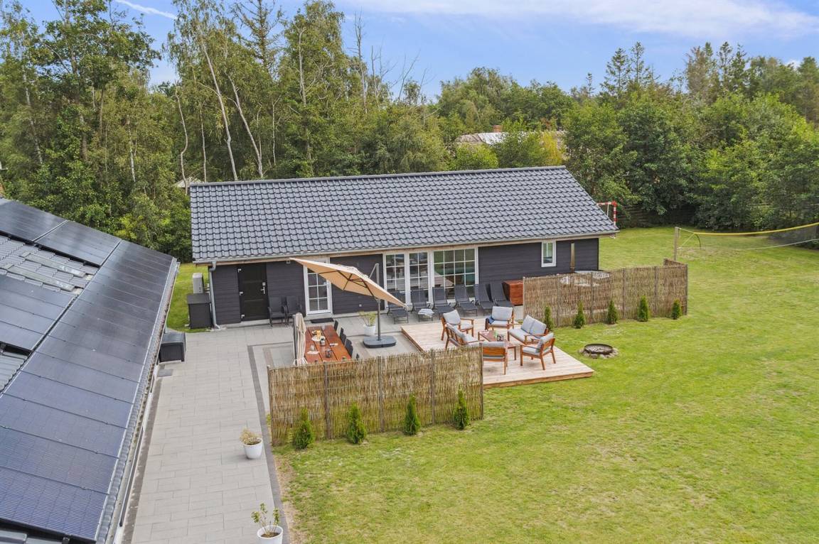 Das Ferienhaus eignet sich für 16 Personen. 5 der Schlafplätze eignen sich jedoch nur für größere Kinder (4-11 Jahre). Die Ferienunterkunft hat eine Wohnfläche von 280 m² und wurde 2019 gebaut. Haustiere dürfen nicht mitgebracht werden. Die Ferienunterkunft ist mit zwei energiefreundliche Luft-Luft-Wärmepumpen ausgestattet. Es gibt Solarwärme. Fußbodenheizung in allen Räumen. Die Ferienunterkunft ist mit Waschmaschine ausgestattet. Wäschetrockner. Tiefkühlmöglichkeit mit 100 Liter Nutzinhalt. Es gibt außerdem einen Kaminofen. Für die jüngsten Feriengäste ist 1 Kinderhochstuhl vorhanden.